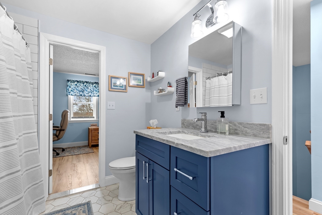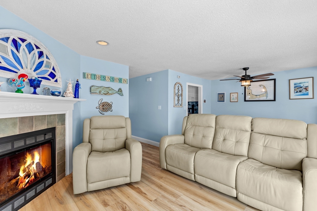 Welcome to this two-bedroom townhouse-style condo in the sought after Harbor Hill community, located just over the Bourne Bridge off Route 28 on Cape Cod. Move-in ready! Enter into the light and bright foyer with all new windows and new flooring throughout. The kitchen has been recently updated and includes newer appliances and opens up into the dining/livingroom area with gas fireplace and slider that opens to the new back deck that abuts the woods for lots of privacy. The second floor features two large bedrooms with a Jack and Jill bath, both have good size closets with lots of natural light. First floor laundry in its own room. Looking for extra space? The lower level provides additional space for storage and could easily be finished for office or family room with walkout access to the backyard. Newer hotwater heater and furnace make this home complete and ready to move in! Additional features include two assigned parking spaces and next door to Brookside Golf Club.
