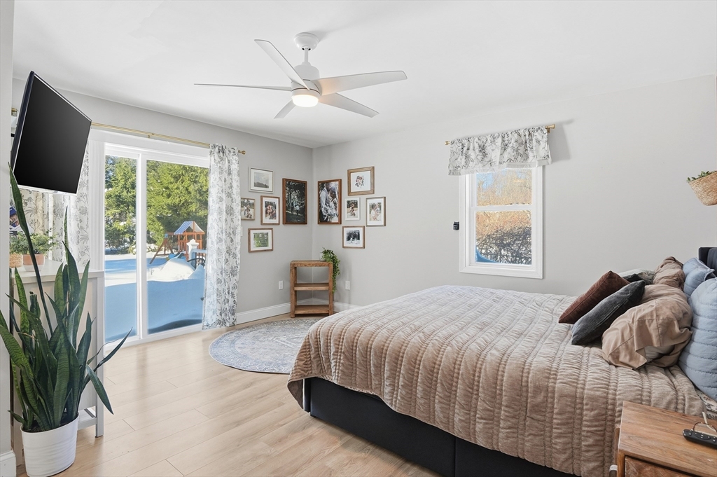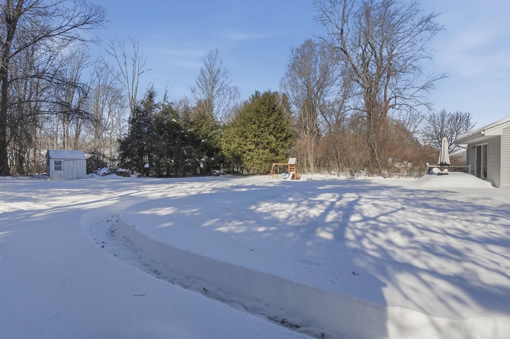 Set on a generous .41-acre lot, this stunning 4-bedroom, 2.5-bathroom Auburn ranch offers single-level living at its finest. The expansive open layout is anchored by a sun-drenched living room boasting sky-high cathedral ceilings, a cozy pellet stove, and slider access to a covered back patio. The chef’s kitchen features granite countertops, stainless appliances, a center island with a breakfast bar, and a formal dining area. Down the hall, the primary suite addition (completed just 4 years ago) serves as a private retreat with two walk-in closets, an ensuite bath, and its own backyard access. Two additional spacious bedrooms and a half bath complete the main floor. The finished basement adds even more versatility with a large bonus room - currently used as a bedroom - plus laundry and utilities with a water softening system. Outside, a massive double driveway fits 8 cars. Perfectly located with easy access to major routes, shops, and dining, this home is a must-see!
