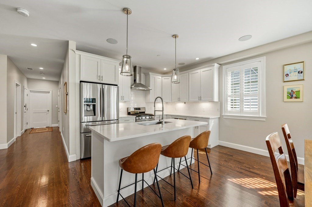 Steps from Adams Village Center, exceptional 2016 construction offers over 2,300 square feet of refined living with three-plus bedrooms, three full baths, two deeded parking spaces, and private deeded storage. Expansive open-concept living, dining, and kitchen area welcomes you with abundant natural light and seamless flow for everyday living and entertaining. The chef’s kitchen features stainless steel appliances, gas cooking, a generous island, and ample storage. Thoughtfully designed layout includes a private primary suite tucked toward the rear, along with a spacious second bedroom ideal for a queen bed, nursery, or home office. The top level showcases a massive third bedroom and oversized bonus room, perfect for a fourth bedroom, playroom, or flex space. In-unit laundry, central air and heat, two standalone deeded parking spaces, deeded storage, and on-site guest parking complete this rare opportunity in one of Dorchester’s most sought-after neighborhood.