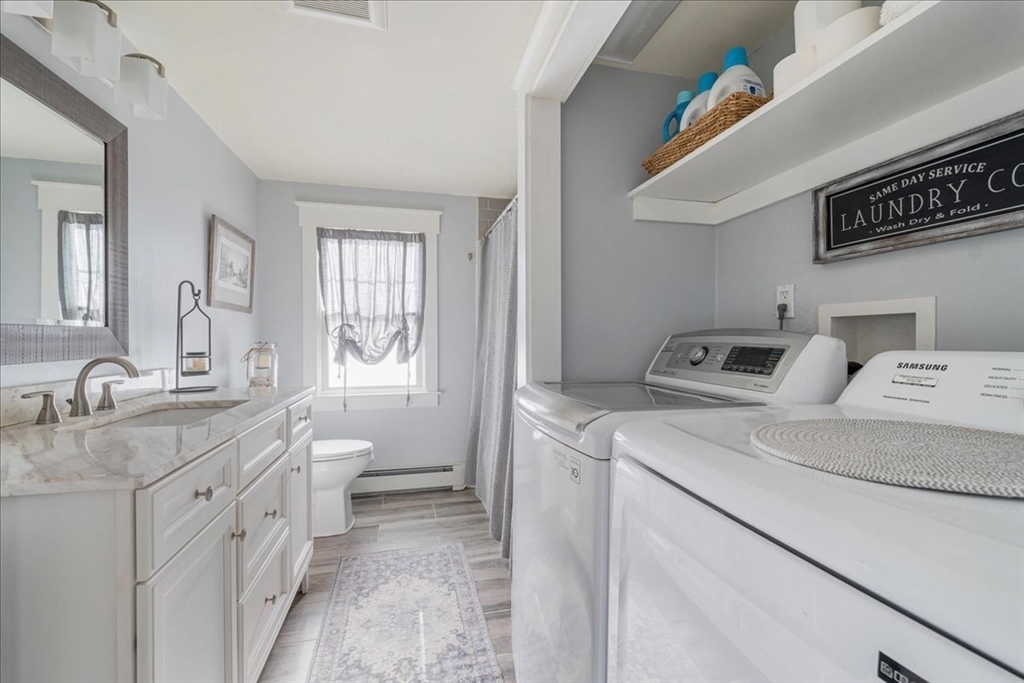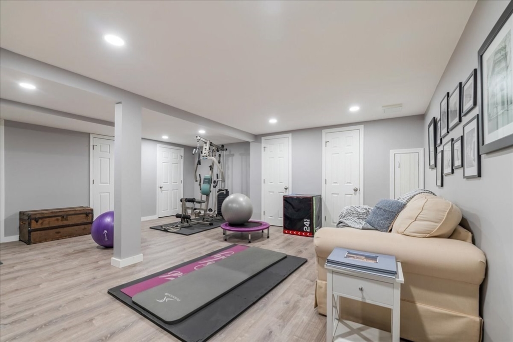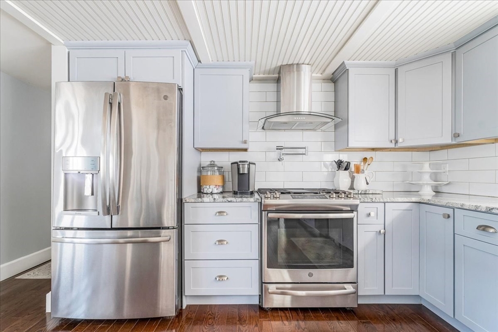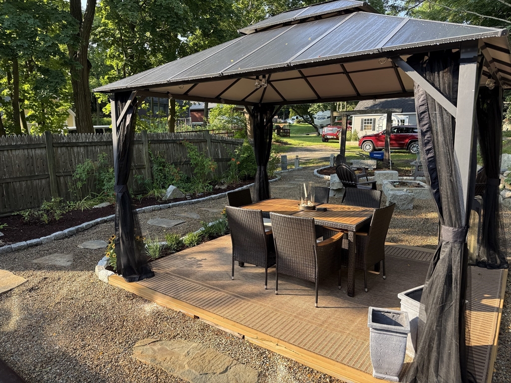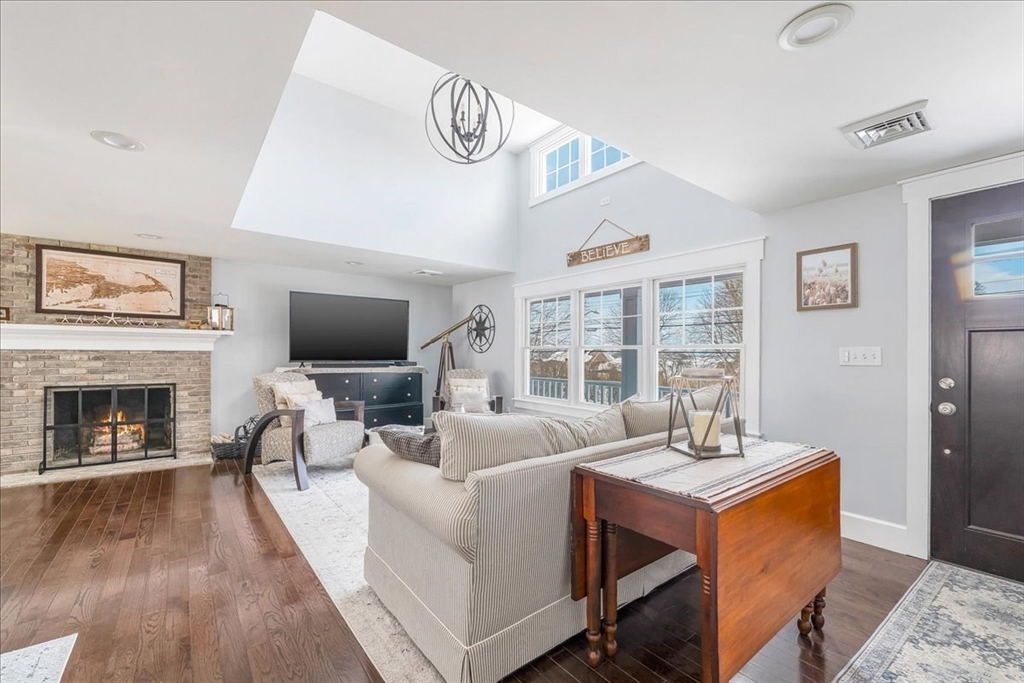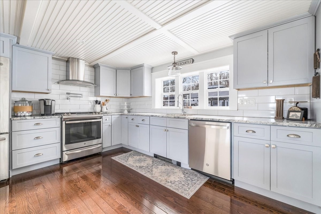 Beautifully updated and ideally located, this inviting home offers the perfect blend of charm and comfort just minutes from the beach and Plymouth's vibrant downtown. The open-concept main level features a sunroom, a vaulted ceiling, hardwood floors, and abundant natural light. The thoughtfully designed kitchen (done in 2018) offers custom cabinetry, high-end appliances, tile backsplash and a striking shiplap ceiling. The dining area flows seamlessly into the living area, ideal for everyday living and entertaining. The main level includes a spacious primary bedroom with en-suite bath, an additional bedroom, and versatile home office. Downstairs, the finished (in 2025) space is flexible--it can be a media room, gym, etc., and includes ample storage and a half bathroom. Additional features include a 20 x 10 Trex deck, 2 car garage, and private yard with deck, gazebo, and shed. Newer roof, floors and windows are among all the recent upgrades. Do not miss out on this Warren Ave gem!