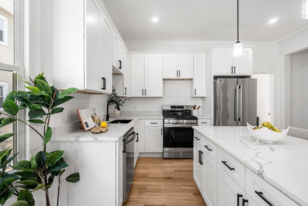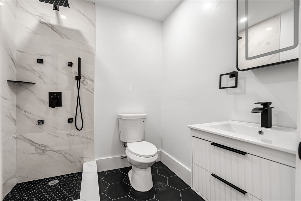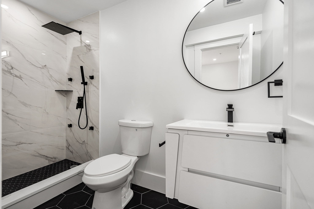 Stunning newly gut-renovated bi-level condo in the heart of the Dorchester/Roxbury line. This expansive 3-bedroom, 3.5-bath residence showcases sleek white quartz countertops, beautifully curated bathrooms, and generously sized bedrooms throughout. The open-concept dining, living and entertaining space is flooded with natural light from oversized windows, creating a bright and welcoming atmosphere. A finished lower-level floor plan includes multiple ensuite primary bedrooms and a bonus room offering ideal flexibility for a home office, gym, or additional living space. Off-street parking included! Enjoy a private deck directly off of the unit for relaxing and entertaining. Conveniently located near Boston Latin School, Longwood Medical Area, Northeastern University, UMass Boston, and Roxbury Community College—this home blends modern living with unbeatable access to the city. If you are looking for great value this spacious unit cannot be missed!