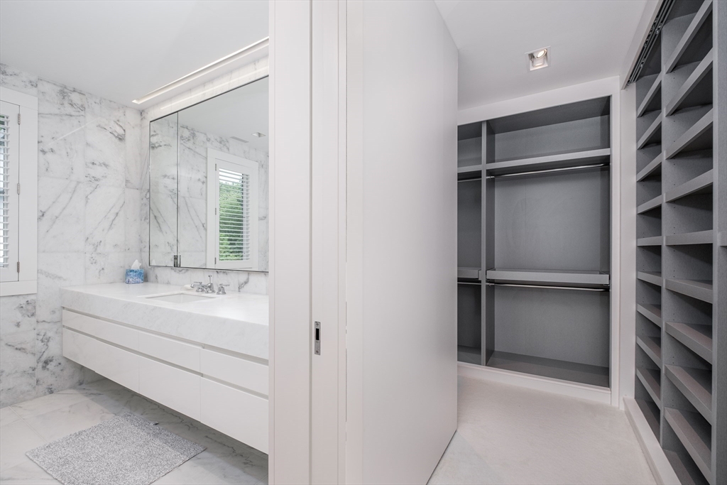 This peerless modern 2-acre estate is located in a highly desired private neighborhood in Weston. Exterior features a beautiful, flat landscaped yard, patio w/grill, and a full sports court. The luxurious 5 bed, 7f/3h bath interior features lofty 12’ high ceilings with walls and ceilings of glass, opening the space to the exterior and drenching this home in sunlight. Smart home features include Lutron shades to provide unmatched comfort. Unmatched detail throughout,with main level foyer, floating staircases, and an open flow to the main dining and living areas. Chef’s kitchen w/top of the line appliances & breakfast bar opens to the large family room with fireplace. Huge office, mudroom, and large 3car garage finish the main level. 2nd floor features an amazing master suite, w/2 large baths and dressing rooms. 4 additional bedroom suites and laundry finish the 2nd floor. The lower level features a large gym, pickleball/sportsroom, playroom/media room, cedar closet, and amazing storage.