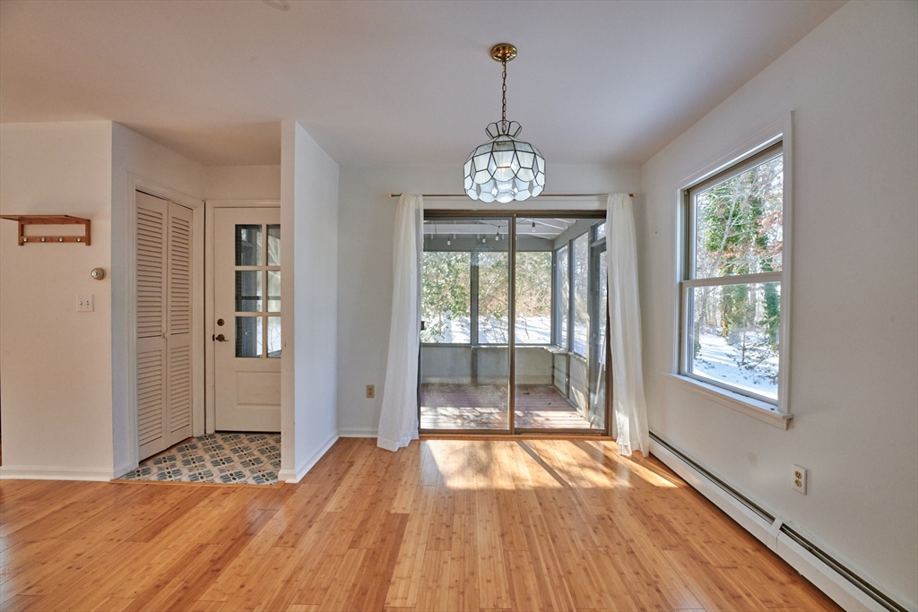 Well-maintained townhouse-style condo in desirable Harwich Port offering 2 bedrooms, 1.5 baths, and a full basement. Thoughtful updates include new hardwood flooring throughout the main living areas and an updated half bath with a new toilet and vanity. The kitchen features modern white appliances and a practical, easy-flow layout. A great screened-in porch adds valuable seasonal living space—perfect for morning coffee or winding down in the evening. A recently replaced water heater provides added peace of mind. The unit is in good overall condition with bright, comfortable living spaces throughout. Condo fee includes heat, water, basic cable, and internet, offering convenience and predictable ownership costs. A wonderful opportunity to enjoy low-maintenance living in a sought-after Harwich Port location.