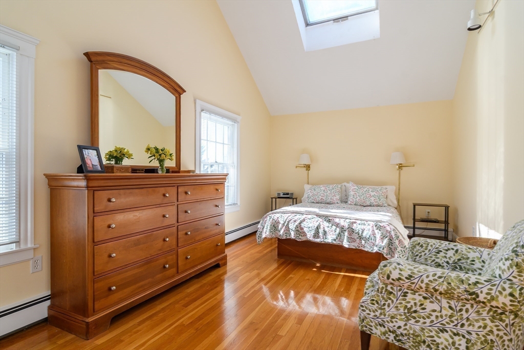 Come fall in love with this charming Colonial on a desirable Sprague Estates cul-de-sac, set on a generous private lot with beautiful stonework. A gracious entry with French doors welcomes you into this light-filled home. The front-to-back living room features a fireplace and direct access to the side yard. The formal dining room is ideal for entertaining, and the kitchen offers custom cabinetry, stainless steel appliances, and opens to the cheerful family room. A tiled mudroom with laundry and powder room leads to a bluestone patio and generous, level backyard. Upstairs, the primary bedroom has a cathedral ceiling, skylight, and its own tiled bath. Three additional bedrooms and a second tiled bath complete the level. The unfinished lower level provides the opportunity to add a playroom or use as is for ample storage. There is easy access to the backyard and the one-car garage. Excellent location: convenient to town, train, and Sprague/Middle/High schools.