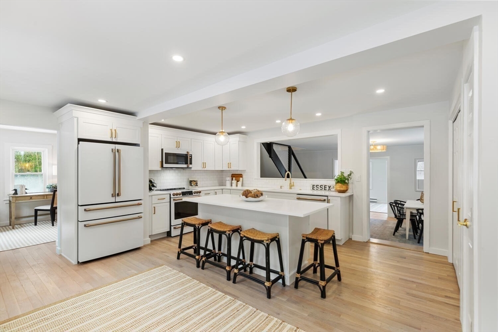 Set against the ever-changing beauty of the Essex marsh, this recently updated home offers privacy, beauty, and timeless New England charm just moments from beaches, boating, and beloved local restaurants. Boasting a highly flexible layout that can accommodate up to four bedrooms, this home adapts effortlessly to your lifestyle. Highlights include a first-floor primary bedroom option for single-level living convenience, a spacious and open first floor offering multiple living spaces, or a formal dining room if needed, as well as a dedicated space perfect for a home office or playroom. At the heart of the home lies a new showstopper kitchen featuring sleek quartz countertops, high-end GE Café appliances, custom cabinetry, and a spacious island. Whether you're a culinary enthusiast or host frequent gatherings, this space combines style, functionality, and those irresistible marsh views.