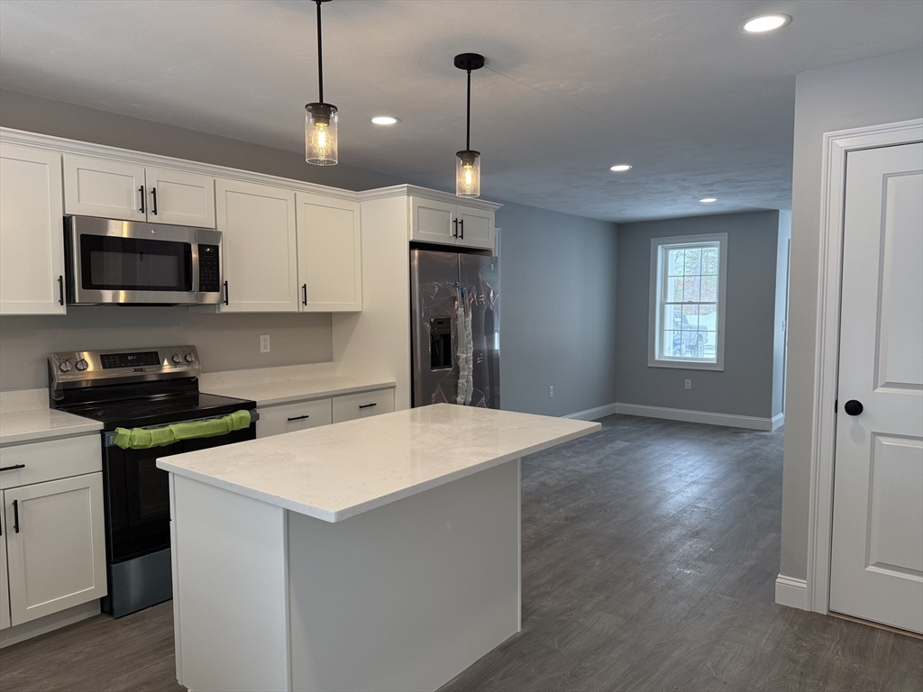Exciting Opportunity to Own a Brand-New (4-Bedroom) Condominium offering 2,280 square feet of thoughtfully designed living space. You will look forward to coming home to this beautifully finished condominium complex. The first floor features a spacious primary bedroom with a private en-suite bath, along with a stunning Kitchen showcasing white cabinetry, Modern black hardware, Stainless steel appliances, and a large island with Quartz Countertops. Ample cabinetry storage provides great functionality. Door off the kitchen leads to a balcony overlooking manicured lawns, ideal for relaxing or entertaining. A convenient half bath completes the main level. Upstairs, you will find three generously sized bedrooms and a full hallway bath, offering flexible space for family, guests, or a home office. Additional highlights include central air conditioning and efficient, low-maintenance living. Ideally located close to Commuter Rail, Highway Access, Boston, Cape Cod.