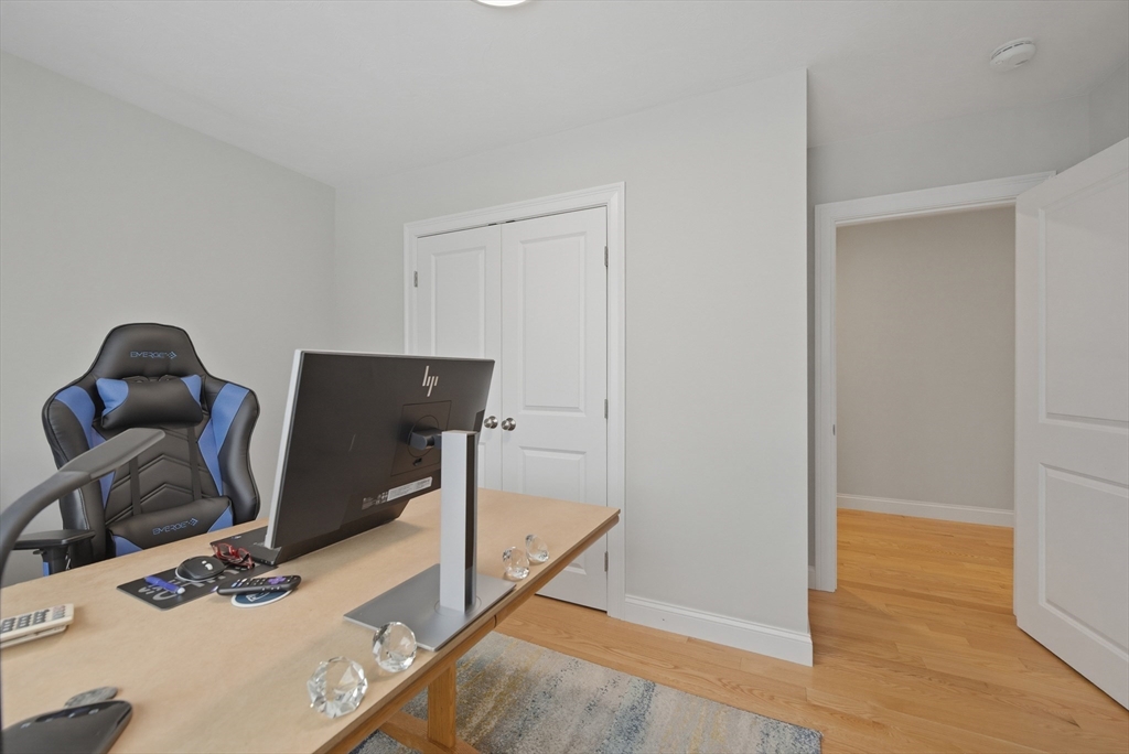 Bright and sunny, this nearly new 2-year-young condo is located in Uxbridge’s latest condo development, Waucantuck Heights. Enjoy a true community feel with sidewalks, green spaces, and convenient access to downtown, shopping, restaurants, and schools—everything just minutes away. Freshly painted interior gives that brand-new feel. The spacious, open-concept layout features upgraded quartz countertops in both the kitchen and bathrooms, hardwood flooring throughout, and tile in the baths. A cozy gas fireplace anchors the living room, creating a warm and welcoming space. All bedrooms are pre-wired for ceiling fans, and the expansive primary suite offers a large walk-in closet, private bath with a double vanity and a separate wet room for added luxury. Huge basement with sliders and additional living space potential. A modern, comfortable, and beautifully maintained home—ready for you to move right in!