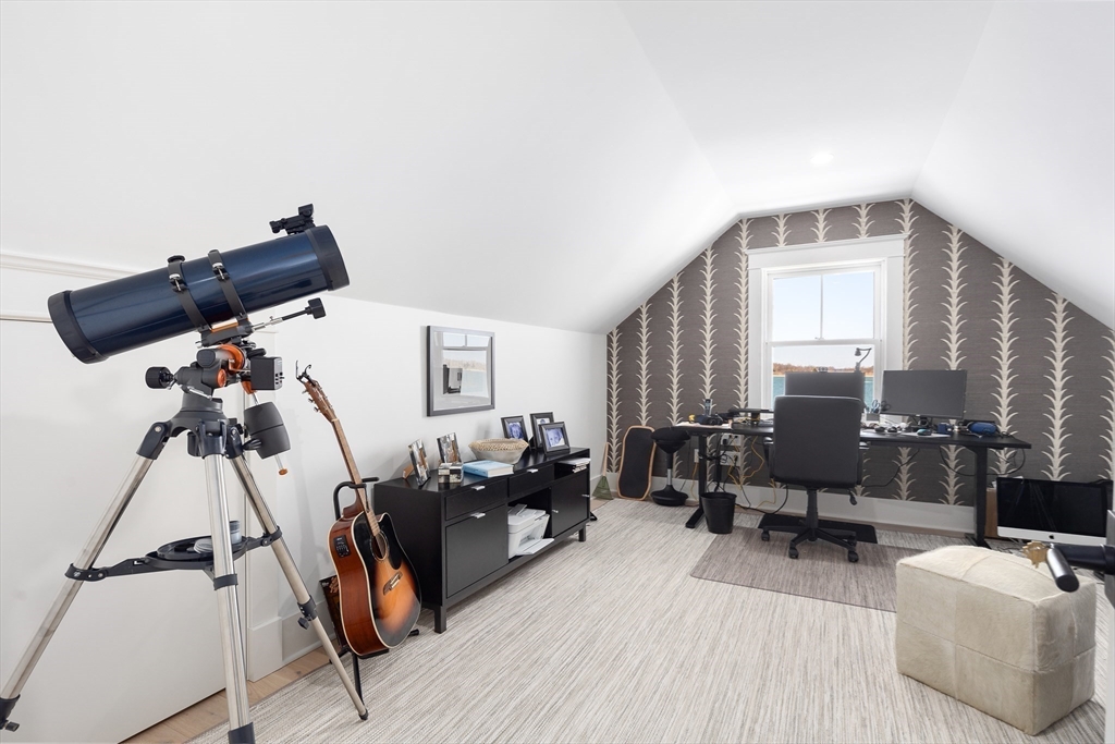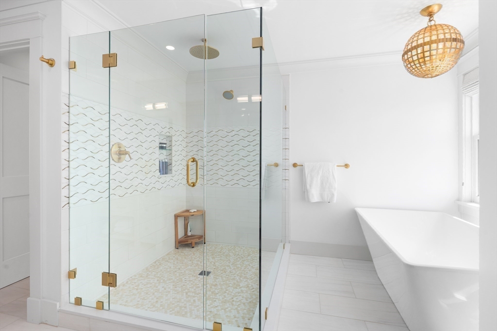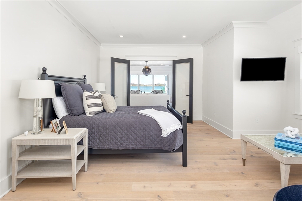 Stunning, WATERFRONT home on a 1/3 of an acre lot, 3+ years young, with over 5100 SF of living space and unobstructed VIEWS of Boston Skyline. This state of the art home features a chef's kitchen with beautiful custom cabinetry and high end appliances/amenities OPEN to a fabulous Family room with a 2 story wall of windows that floods the home with beautiful natural light and affords maximum views. The first floor also offers a cozy sunroom, beautiful dining room, a first floor guest bedroom that could also be a primary suite, and a gracious foyer that captivates you the moment you enter the house, because of the jaw dropping views. Upstairs there are 4 additional BR's and 3 full baths, including a LUXURIOUS primary suite w/ "to die for" closets and bath. The 3rd floor offers a game room with built in bar, large seating area, an office, half bath and LOTS of storage. Gorgeous deck with built in grill, hot tub and outdoor shower and rare level lawn space. The SUNSETS are mesmerizing!