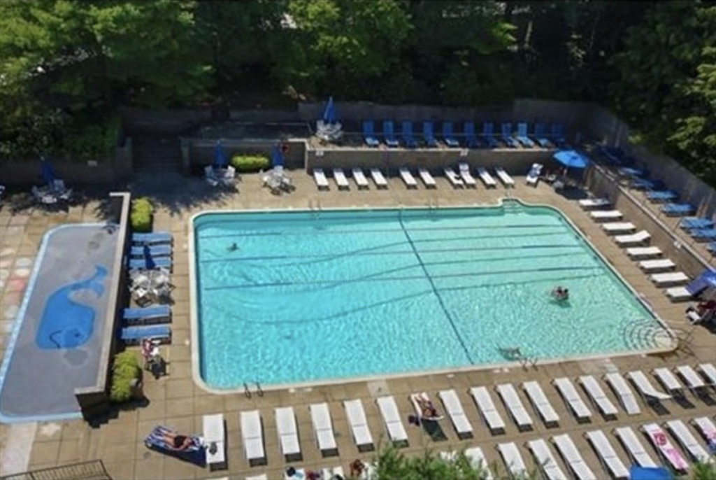 This beautiful one-bedroom apartment features a sunny, high-floor location with a stunning pond view. The unit includes an open kitchen with stainless steel appliances, hardwood floors, and central AC. Residents enjoy premium amenities, including a 24-hour concierge, an outdoor swimming pool, a fitness center, and tennis courts. Rent conveniently includes heat, hot water, AC, cooking gas, and one heated garage parking space. The building is ideally located steps from the Green Line D Brookline Village Station and major bus lines. It is within walking distance of the Longwood Medical Area, offering easy access to downtown Boston and the surrounding city.
