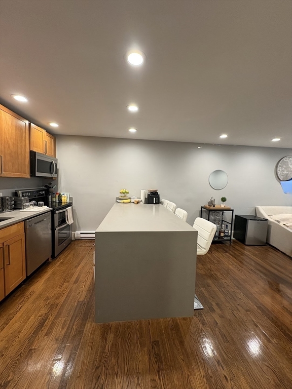 CLASSICALLY RENOVATED PET FRIENDLY 2 BEDROOM/1 BATHROOM UNIT WITH ONE OFF-STREET PARKING SPACE AVAILABLE FOR JUNE 1ST! THIS TOP FLOOR APARTMENT FEATURES HARDWOOD FLOORS THROUGHOUT, AN OPEN FLOOR PLAN, MASSIVE LIVING ROOM, FULLY APPLIANCED UPDATED KITCHEN, MODERN BATHROOM, LAUNDRY ON SITE, QUEEN+ BEDROOMS AND ADDITIONAL CLOSET SPACE. LOCATED ACROSS THE STREET FROM THE JFK RED LINE T STOP. ADDITIONAL PARKING AVAILABLE FOR $100/MONTH.