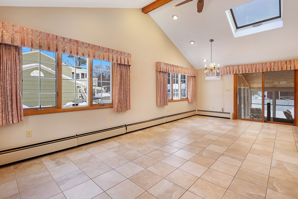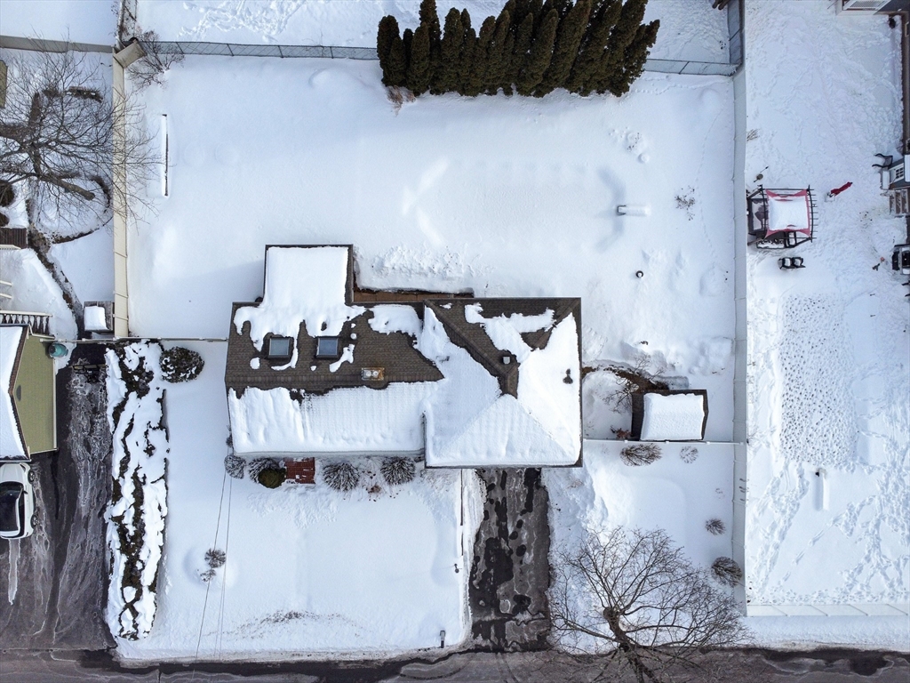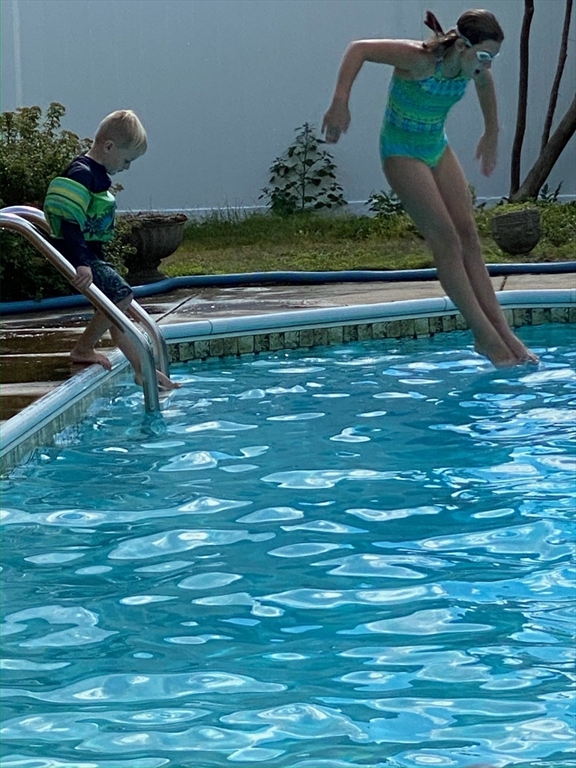 Experience refined living in this custom tri-level home, perfectly set on a level lot with resort style amenities. This beautifully maintained 7 room residence offers 3 spacious bedrooms and an elegant living room highlighted by a classic fireplace. The sun-filled family room impresses with soaring cathedral ceilings and skylight, creating an airy and sophisticated atmosphere. Rich hardwood floors extend throughout the home, enhancing its timeless appeal. Recent upgrades include a stylish newer bathroom, updated heating system, and newer windows for modern comfort and efficiency. Newly painted exterior.Step outside to a private backyard oasis featuring a pristine inin ground pool - ideal for entertaining or relaxing in luxury.