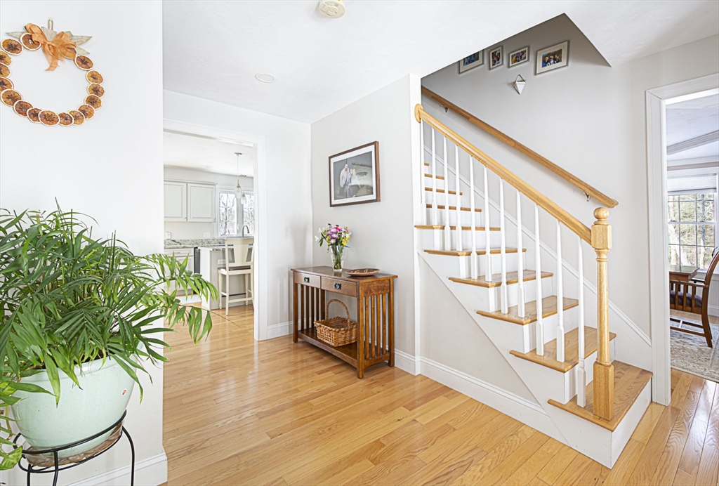 Farmer’s porch Colonial built in 2020 offering 2,240 sq. ft. of modern style and quality craftsmanship. The circular floor plan features hardwood flooring and well-designed spaces ideal for both entertaining and everyday living. The upgraded kitchen boasts hardwood cabinetry, granite countertops, an oversized island, and a large pantry. The adjoining dining area with slider opens to a deck overlooking scenic country views, a fenced yard, and a shed w/ electricity. A formal dining room with raised paneling and a tray ceiling provides an elegant setting for gatherings. The second level offers four bedrooms, two full baths, and convenient second-floor laundry. The primary suite includes a walk-in closet and private bath with double vanity and walk-in shower. Enjoy move-in-ready modern living within the Tantasqua School District and close to Historic Downtown Sturbridge’s local eateries, shopping, and major highway access. Walk-out basement offers excellent potential for future finishing.