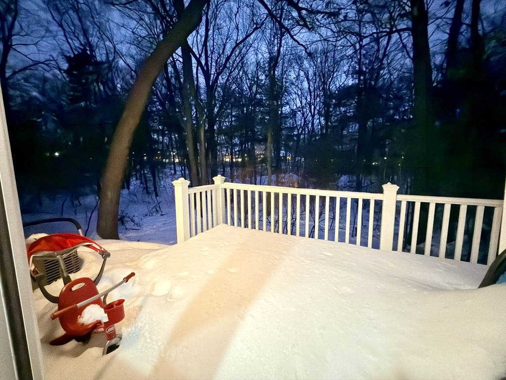 Move-in-ready five-room end unit offering a quiet residential atmosphere with natural surroundings and close proximity to local amenities. The interior layout emphasizes comfort and functionality, with an updated kitchen featuring granite surfaces, modern cabinetry, and gas appliances that open into a bright living area. Sliding access leads to a private balcony, creating a comfortable indoor-outdoor connection.The main bedroom includes an en-suite bath and ample closet space. A second bedroom and full bathroom provide suitable accommodations for guests or office use. The lower level is finished and offers additional living space with a gas fireplace. Central cooling, gas heat, and an attached garage complete the home. Conveniently located within minutes of shopping, restaurants, healthcare facilities, and major commuting routes.