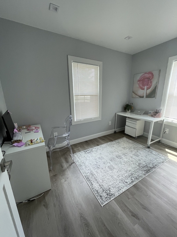 Gut renovated in 2022, this sun-filled 3-bedroom, 1-bath unit offers a functional and flexible layout with an eat-in kitchen and a versatile bonus room ideal for a nursery or home office. Features include central air conditioning, in-unit washer and dryer, an EV charger, and a newly built private back porch for outdoor enjoyment. Well-proportioned rooms with ample closet and storage space throughout, along with updated, energy-efficient systems. Off-street parking available for 2–3 vehicles. 700+ credit score required.