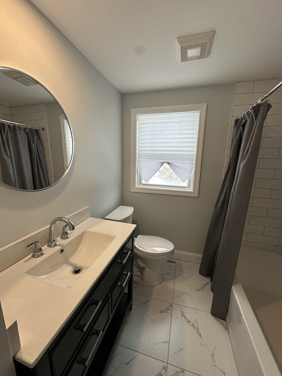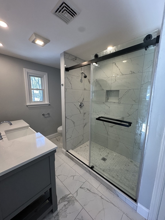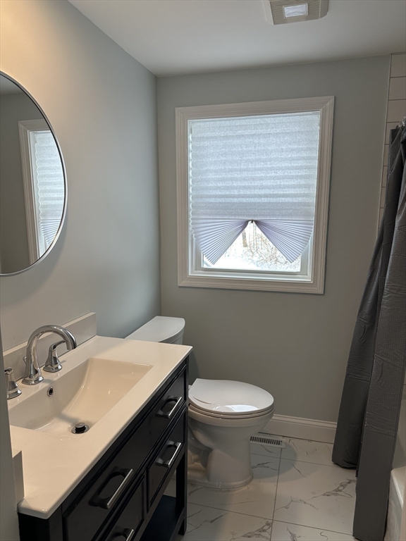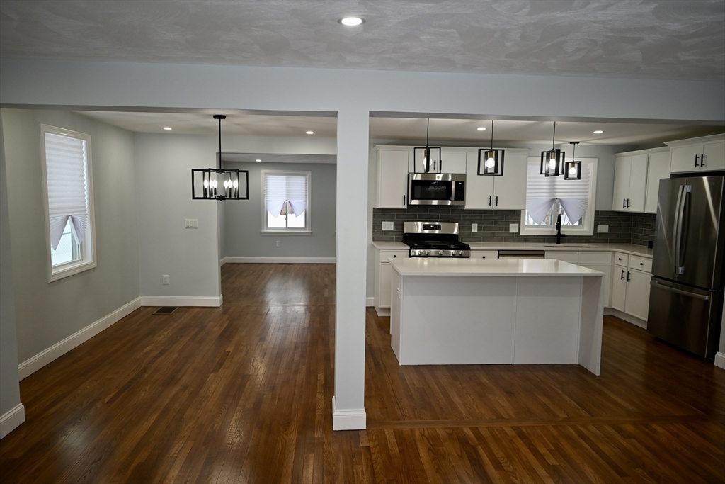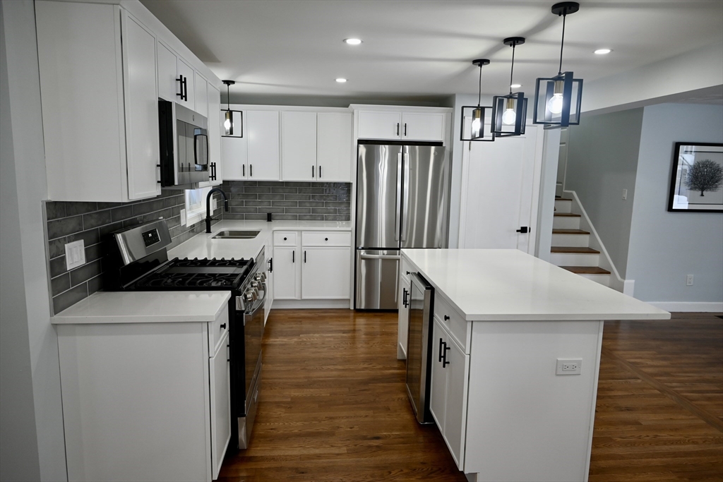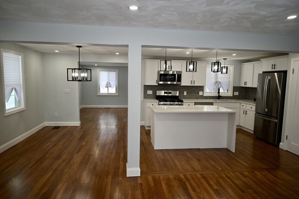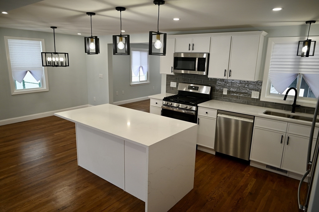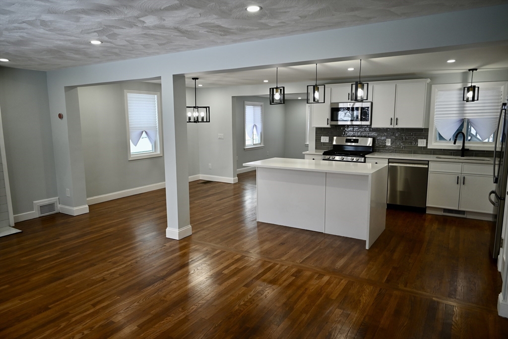 Completely renovated from top to bottom with nothing left to update, this truly turnkey 5-bedroom, 3-bath home at 81 Earle Street in Norwood offers 2,355 sq ft of beautifully redesigned space built for modern family living. The bright, open layout centers around a stunning new kitchen with quartz countertops, shaker cabinetry, a stylish backsplash, and a large island perfect for busy mornings and effortless entertaining. Three newly finished bathrooms include a spacious primary suite with private bath and generous walk-in closet, plus a new mudroom for everyday convenience. Major upgrades ensure years of worry-free living, including brand-new HVAC with heat pumps, new and refinished hardwood floors, windows replaced in 2022 and 2025, a roof replaced in 2021, and water heater (2020). Just a short walk to the commuter rail and Norwood town center, this fully renovated home is exactly what today’s buyers are waiting for.