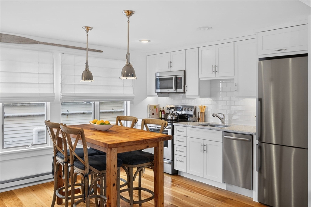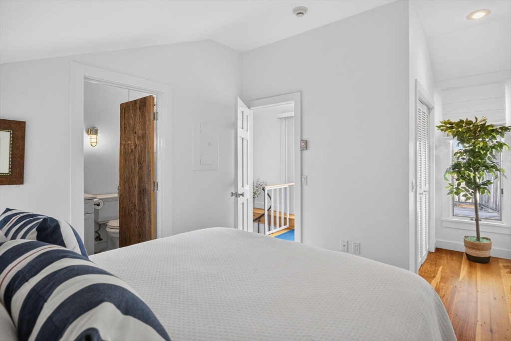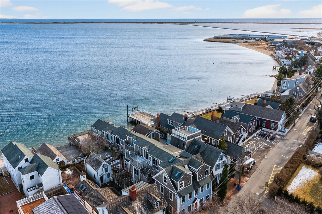 Set within the coveted West End, this beautifully finished one-bedroom residence offers a rare blend of waterfront tranquility and immediate access to the energy of Provincetown. Thoughtfully designed across two levels, the home captures water views and coastal light while delivering turnkey ease. The main level features an open-concept living, dining, and kitchen space with custom built-ins, quality cabinetry, rich hardwood floors, and water views from the living area. The kitchen is well sized for the footprint, with refined finishes and strong functionality, plus in-unit laundry for everyday convenience. Upstairs, the bedroom retreat offers privacy along with a full bath and direct access to a private deck overlooking the water — an intimate perch for morning coffee or evening sunsets. Owners also enjoy a shared beachfront deck just steps away, set over the sand with immediate beach access below. Peaceful yet moments to Commercial Street’s dining, galleries, shops, and nightlife!