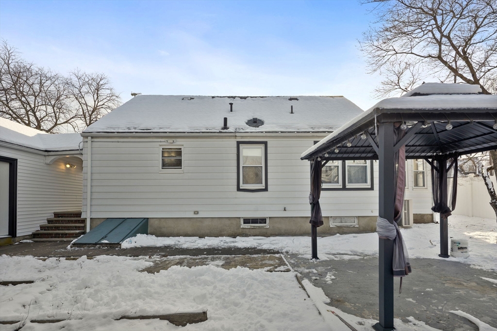 This charming 3-bedroom, 2-bathroom Cape-style home offers the perfect blend of comfort and functionality, featuring a lovely yard, the convenience of gas cooking, and the added comfort of ductless cooling. The sunroom, filled with windows and natural light, is a bright and versatile space perfect for a home office or playroom. The private fenced yard includes a patio and gazebo, making it ideal for gardening, barbecuing, entertaining, or outdoor seating. Inside, hardwood floors and a welcoming fireplace create a space that is both refined and comfortable. Ample storage in the garage and basement ensures plenty of room for all your needs. Nestled in a vibrant neighborhood close to local shops, dining, parks, and schools, providing easy access to everyday essentials.