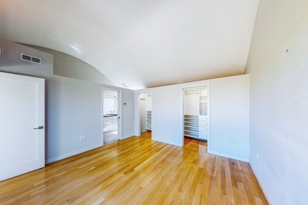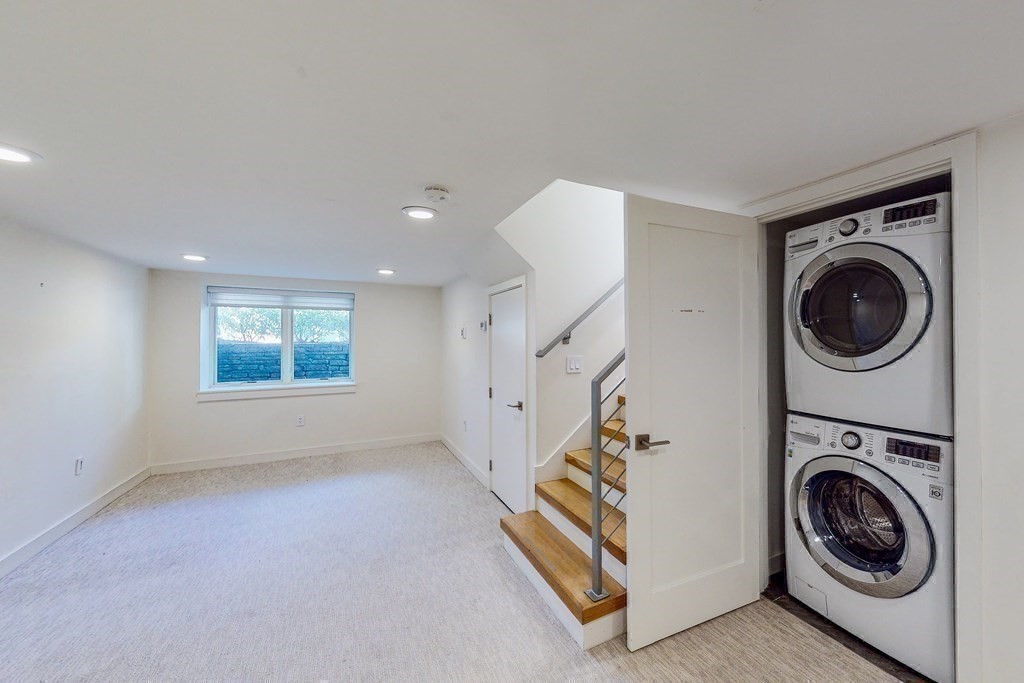 Across from the Charles River, this spectacular comtempory townhome reveals a light-soaked interior through the floor-to-ceiling glass walls. The dynamic floor plan offers living, dinning and a quartzite-clad kitchen in one sunny expanse on the main level; 2 beds&2 full baths on the 2nd level; a stunning primary suite with soaring ceilings, custom closets, luxury ensuite bath and a private deck on the 3rd level; and at the finished lower level the flexible space for a media/playroom/workshop with a full bath, a podwer room and laundry. A secluded enclave accompanied by two other stunning townhomes & one parking space, 140 Banks is steps to Harvard, HBS and the Charles.