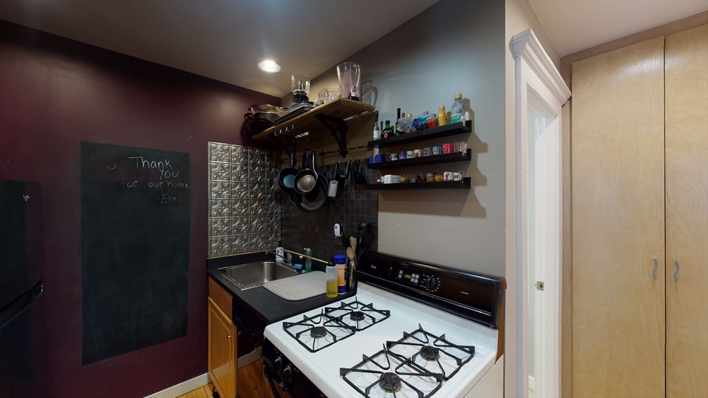 ALL UTILITIES INCLUDED - Charming 1-bedroom in the heart of Bay Village with character and smart use of space! This thoughtfully laid-out unit features hardwood floors, oversized windows, and custom built-ins throughout. The open living area is bright and cozy, perfect for relaxing or working from home. A unique galley-style kitchen boasts ample cabinet space, granite-look countertops, a gas stove, and open shelving for a stylish, functional touch. The bathroom includes a full tub with sliding glass doors, a pedestal sink, and a large mirrored vanity. The bedroom offers built-in closet systems and overhead storage. Heat, water, gas, and electricity are included in rent. Laundry is located in the building's basement (coin-op). Resident street parking is available in Bay Village. Minutes from the Green and Orange Lines, Tufts Medical, and some of the city's best dining. Available May 1st. No pets. Students considered with a guarantor.