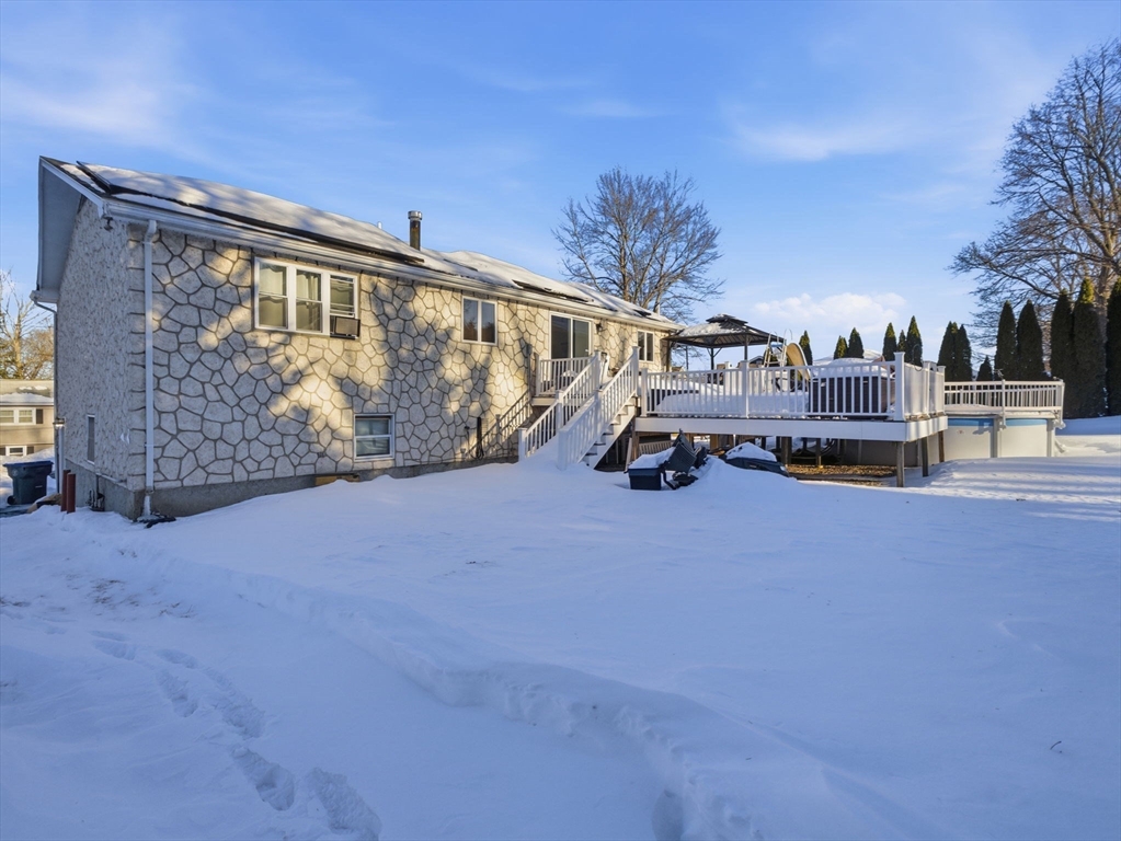 Welcome to 39 Swan Ave! This property has been updated over the years and features three bedrooms and two full bathrooms with a kitchen equipt with quartz countertops, porcelain flooring, stainless steel appliances, hood vent, cathedral ceiling and skylights. Cathedral style ceiling offers an open feel while natural sunlight enters the space. Hardwood flooring runs throughout the main level with multiple closets for storage space and a Jack and Jill style full bath. The lower level includes a den, tiled flooring, a wood-burning stove, a full bathroom, laundry, and an additional room suitable for various uses. Off the den is access to a two-car garage with additional parking in the paved driveway. Outside amenities include a heated above-ground pool, composite deck, gazebo, patio furniture to remain, two sheds, solar power system, newer roof (2020), veneer stone siding, and granite front steps. Welcome home!