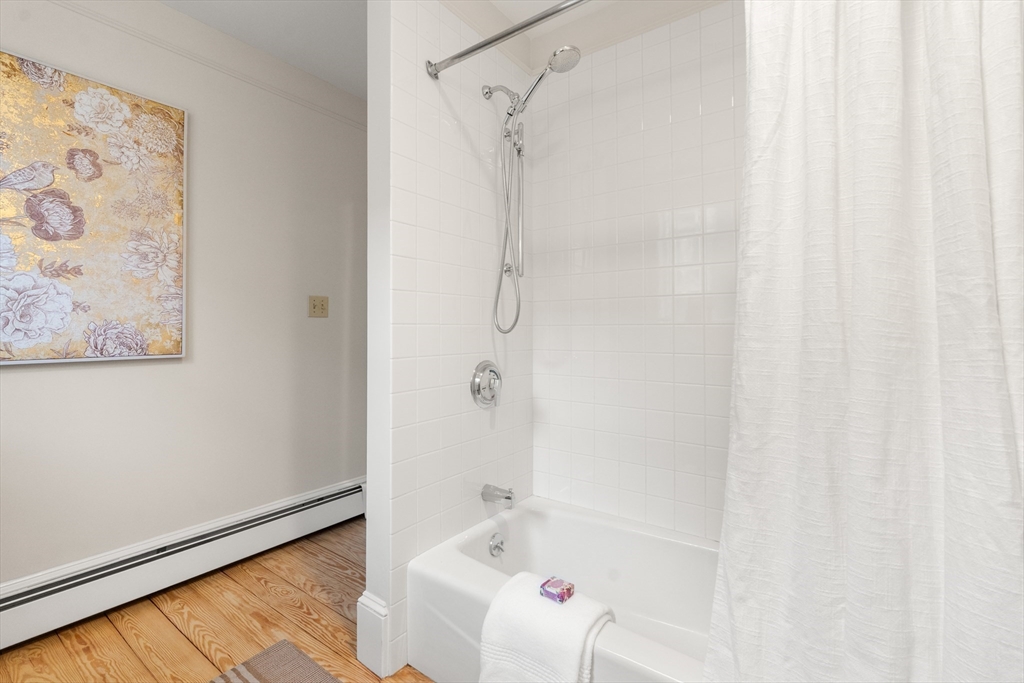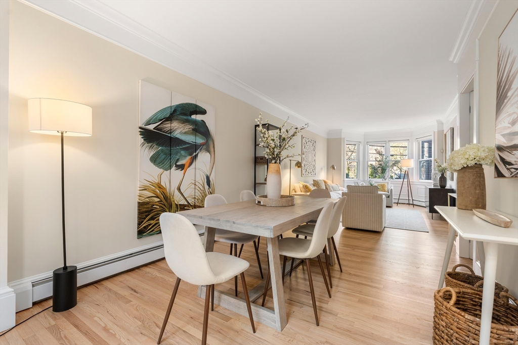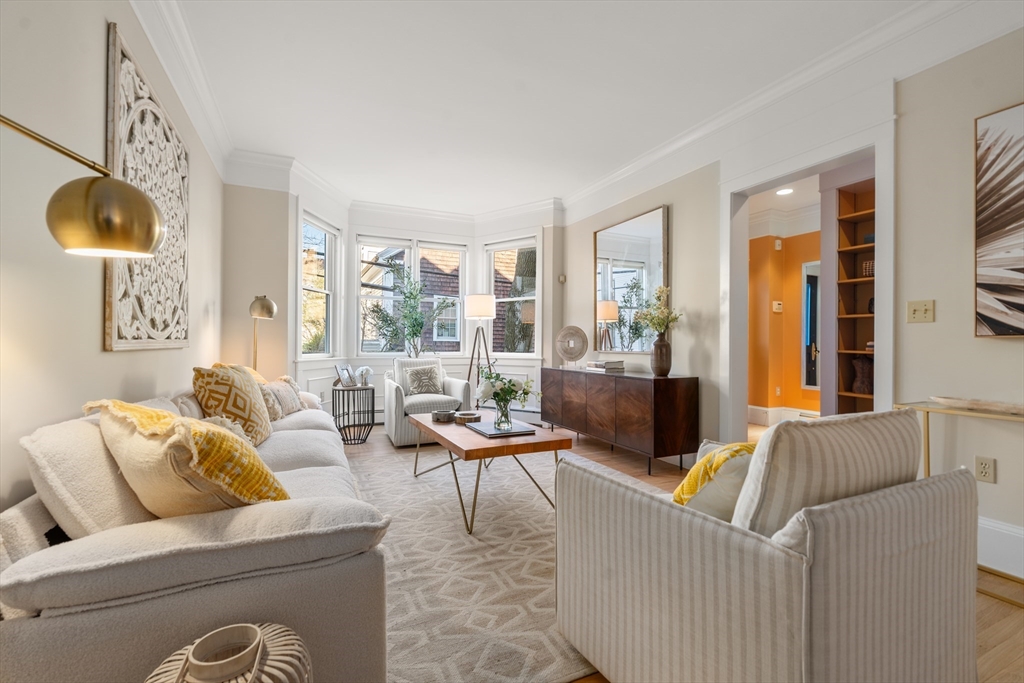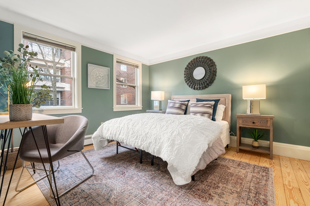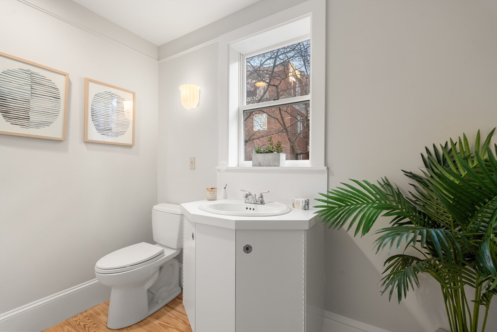 This special offering displays a timeless blend of contemporary and Victorian design throughout. The striking foyer has floor to ceiling built-in bookcases. A 35' living/dining room offers a bay window, 3 skylights, and sliding glass doors to the private fenced-in garden & patio. The European-inspired kitchen showcases a Viking & SubZero stainless steel appliances, custom cabinetry, stone & butcher block countertops, and 2 more skylights. The 2nd floor houses 2 bedrooms each with a double closet, a hall bath, and laundry room. The primary suite occupies the entire top floor, with a landing area with a skylight & walk-in closet, extra closets, a sitting area, en-suite bath, and sliding glass doors to the private roof deck. The lower level offers a 27' family room, bathroom, and large storage/utility room with extra laundry hookups. Other amenities include professionally managed & maintained deeded parking, which includes snow removal. Located around the corner from restaurants & shops.