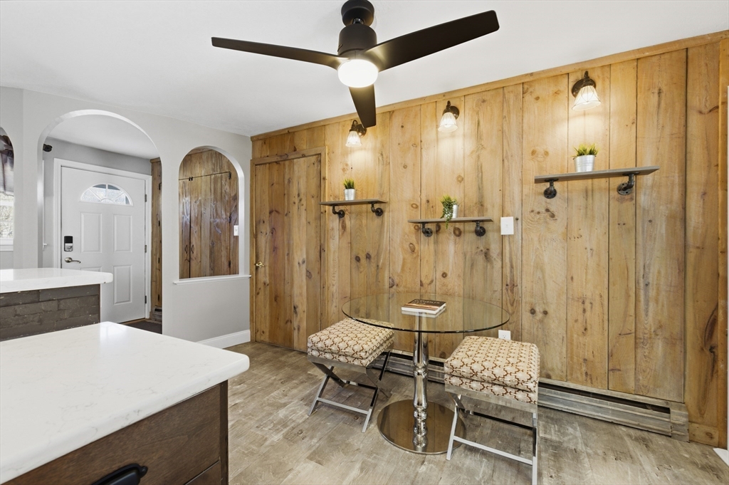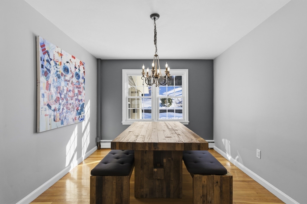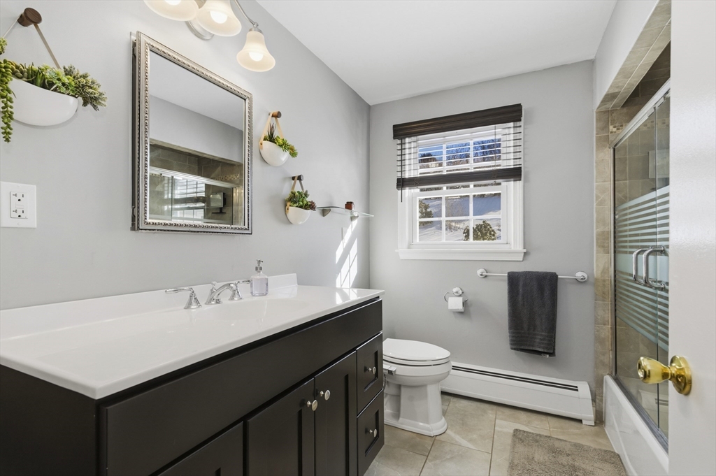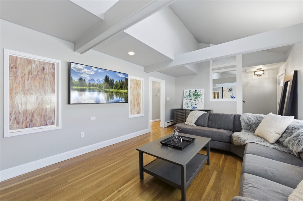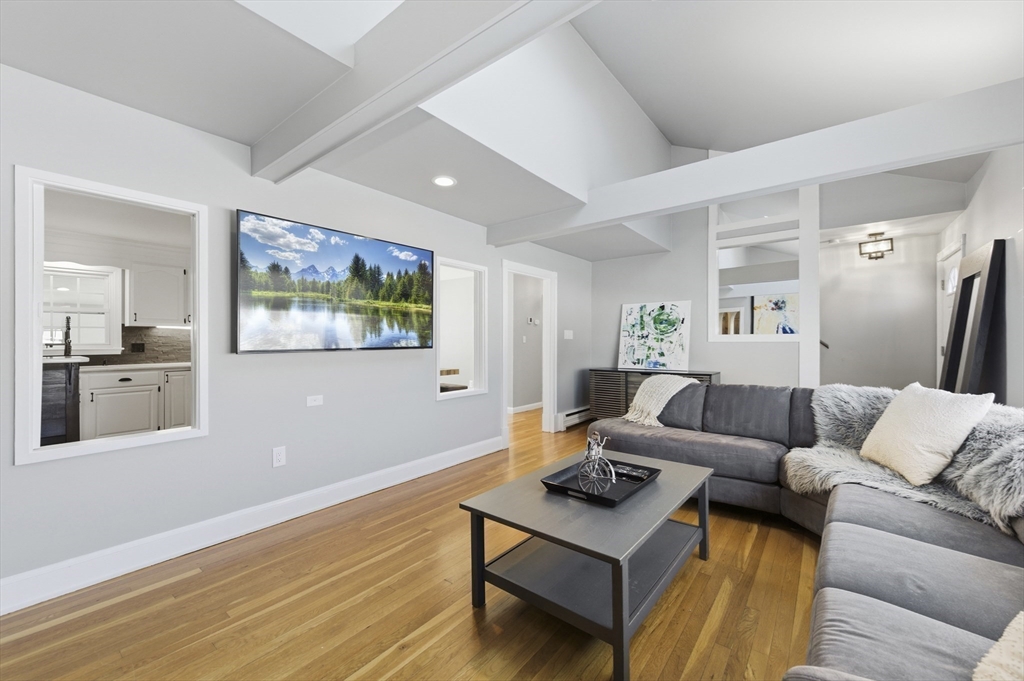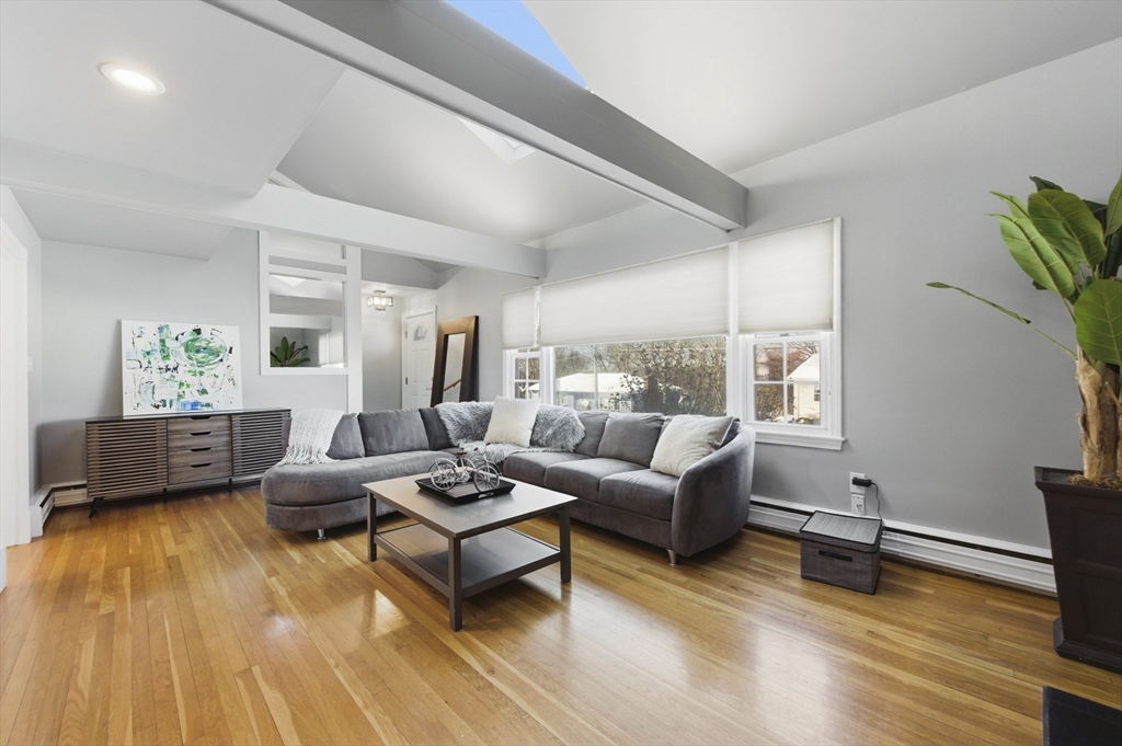 For those who appreciate thoughtful design and true character, this desirable North Tewksbury home offers something special. Inside, a spacious kitchen features an oversized tiered island—perfect for gatherings and everyday living—along with a striking black tile backsplash, quartz counters, stainless steel appliances, and a built-in wine refrigerator. A casual eat-in area and separate dining room provide flexibility for both daily meals and formal occasions. The living room showcases vaulted ceilings, a skylight, and a dramatic fireplace wall. Tucked at the rear, the family room overlooks a beautifully landscaped yard with a paver patio and tiered greenery. The first floor includes a primary bedroom, second bedroom and fully updated bath, while upstairs offers two additional bedrooms and a stylish full bath. The basement provides generous space with room to expand, create a home gym, office, or additional recreation area — plenty of space to grow. This is a must see to appreciate.