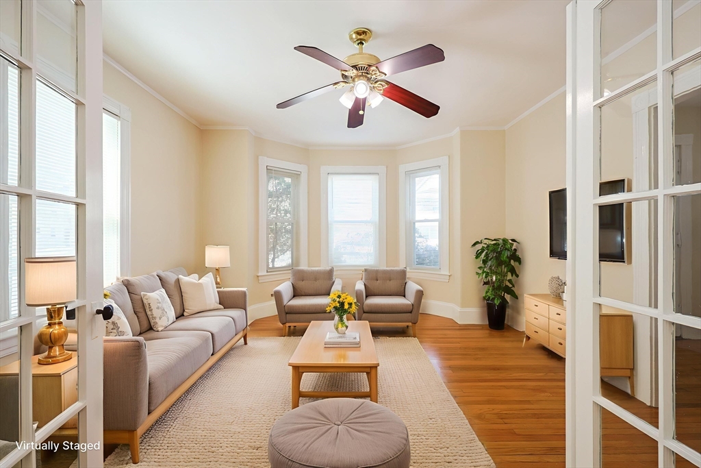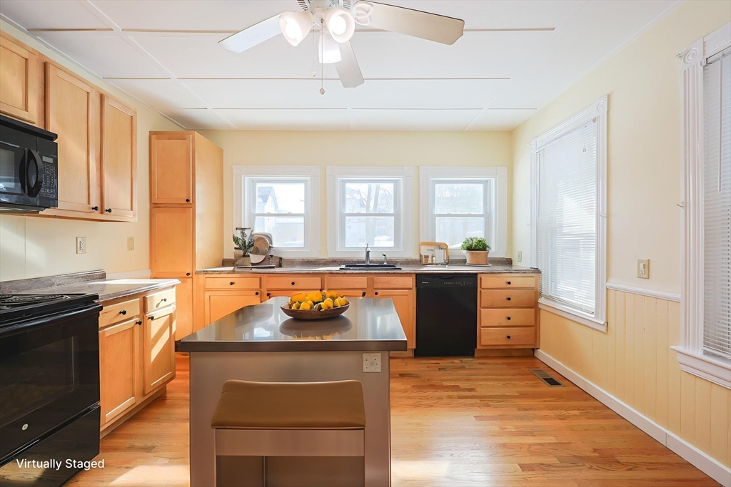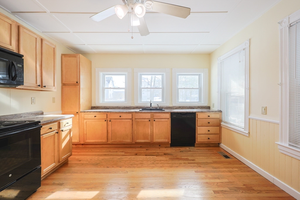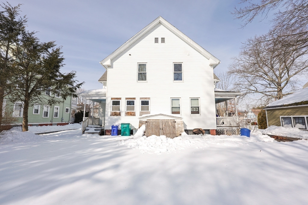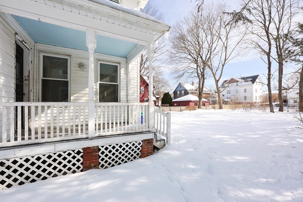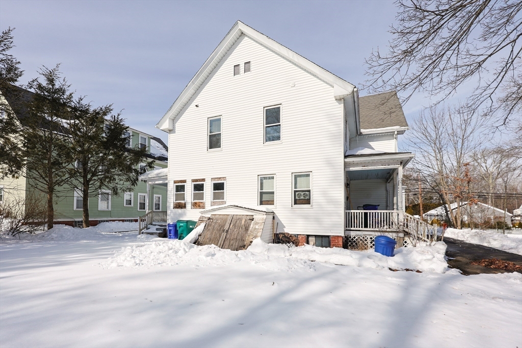 Duplex-style multi-family with two spacious units, each featuring 3 bedrooms and hardwood floors throughout, front & rear porches. Separate driveways—parking for up to six vehicles. Flat, partially fenced backyard, full basement with laundry hookups, and a walk-up attic with expansion potential. Kitchen appliances stay; recent updates include newer windows, heating systems, and hot water heaters. Delivered vacant—ideal for investors or owner-occupants. Close to train station, major highways, schools, and within walking distance to the town center and Capron Park.