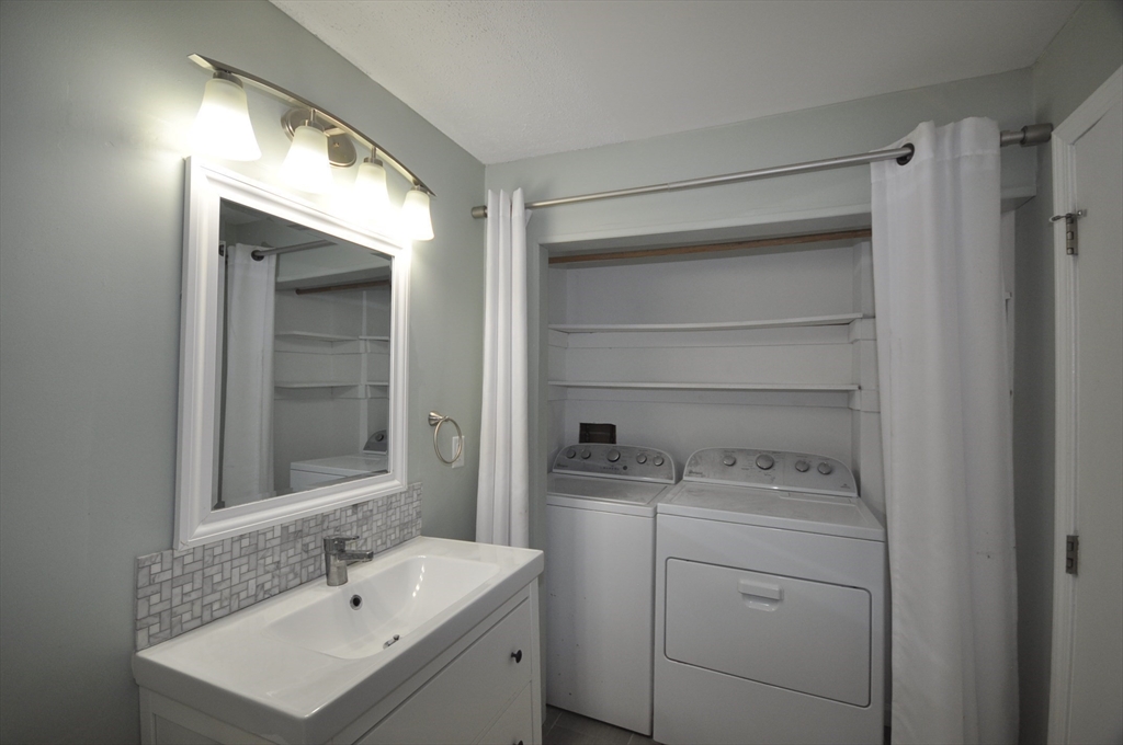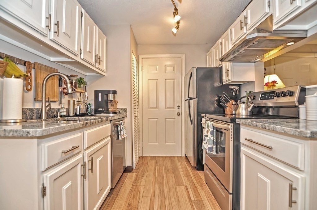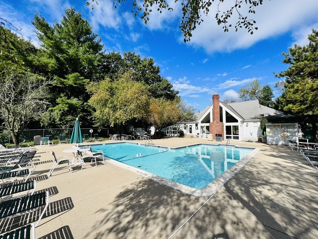 Sought after sunny 2 bed 2 bath unit at Deerfield Forest! 1st floor (no stairs) Direct entrance from patio. White kitchen cabinets w/granite counter tops & stainless appliances. Pergo flooring throughout! Renovated tiled bathrooms, Walk-in closets. Warmer days are coming - enjoy your morning coffee on your own patio! Heat pump & condenser (2016), water heater (2025), Nest thermostat, electric fireplace insert with remote. Full size washer & dryer. Storage closet off patio. Professional on-sight management along with inground pool, hot tub and tennis court. This is a must see! Great location! Less than a mile to West Natick Train, close to major routes, shopping and dining!