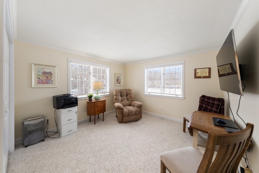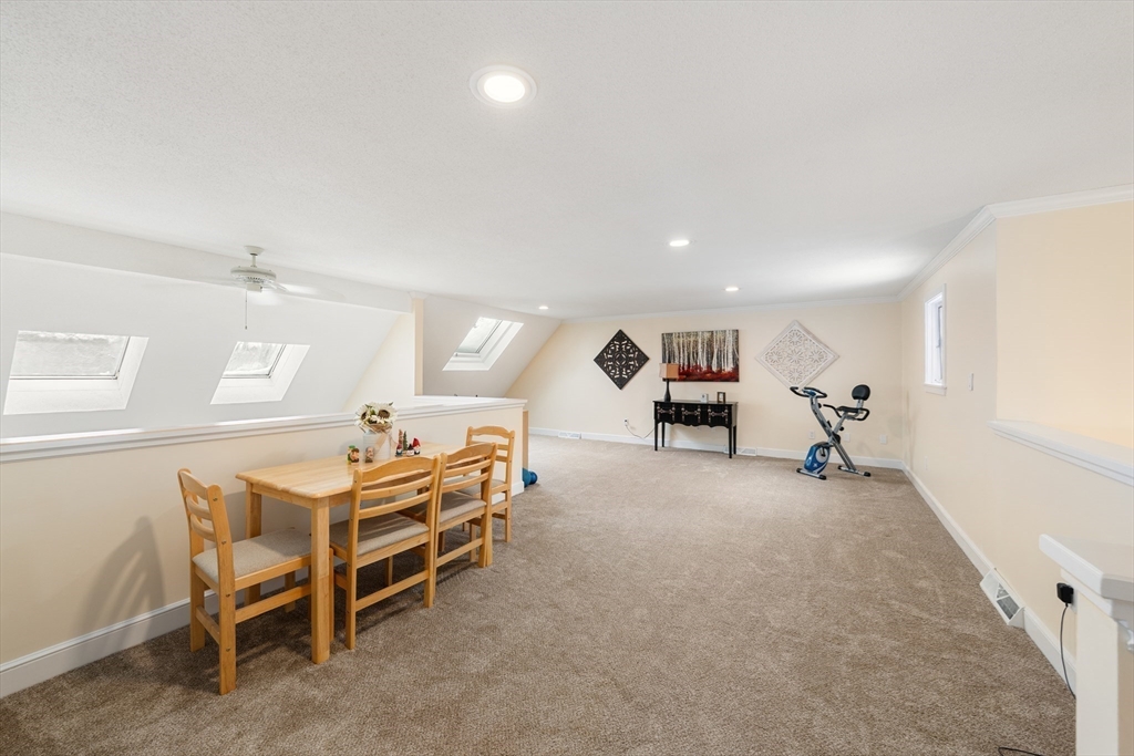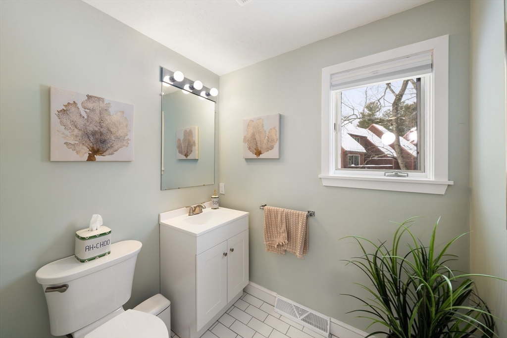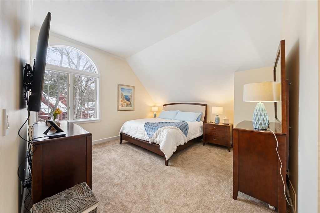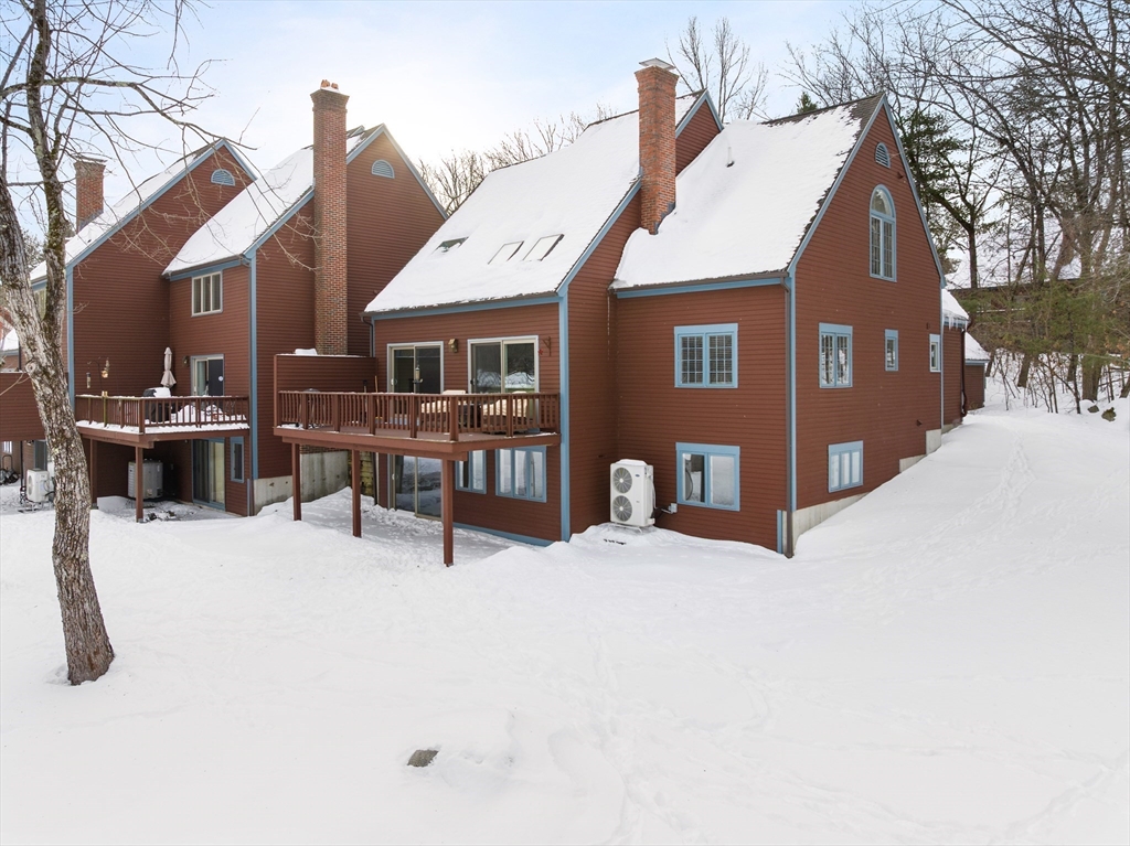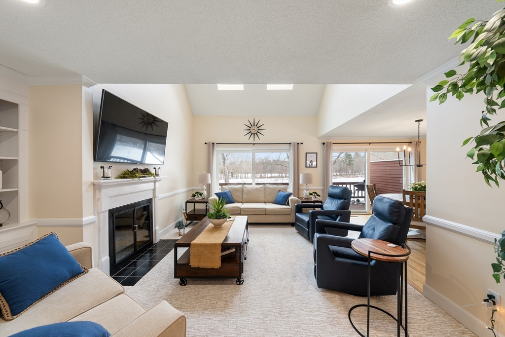 A wonderful opportunity for a detached, waterfront townhouse in Westford's beloved Blanchard Farms! Nestled at the end of a quiet dead-end street, this home offers plentiful natural light, views of surrounding nature, and the privacy and space for comfort. Main living area is sun-drenched with sliding doors, skylights, custom built-ins and fireplace, overlooking an oversized deck with gorgeous pond views. Second floor features a primary suite combo of the master bedroom/bath with a loft perfect for an office or lounge. Two more bedrooms and two baths on the main floor, paired with a full laundry closet offers cozy living. Walk-out lower level is icing on the cake with a bar, wood-burning stove, natural light, guest bedroom with cedar closet and storage room! Tastefully updated with new sliding glass doors, new windows, wall-to-wall carpeting, fresh paint & trim, new appliances and so much more! With the pool, tennis, trails, and clubhouse, enjoy all that this townhouse has to offer!