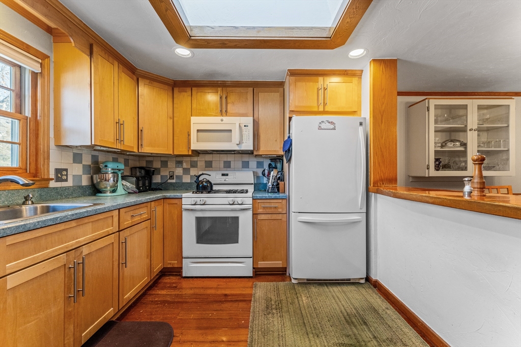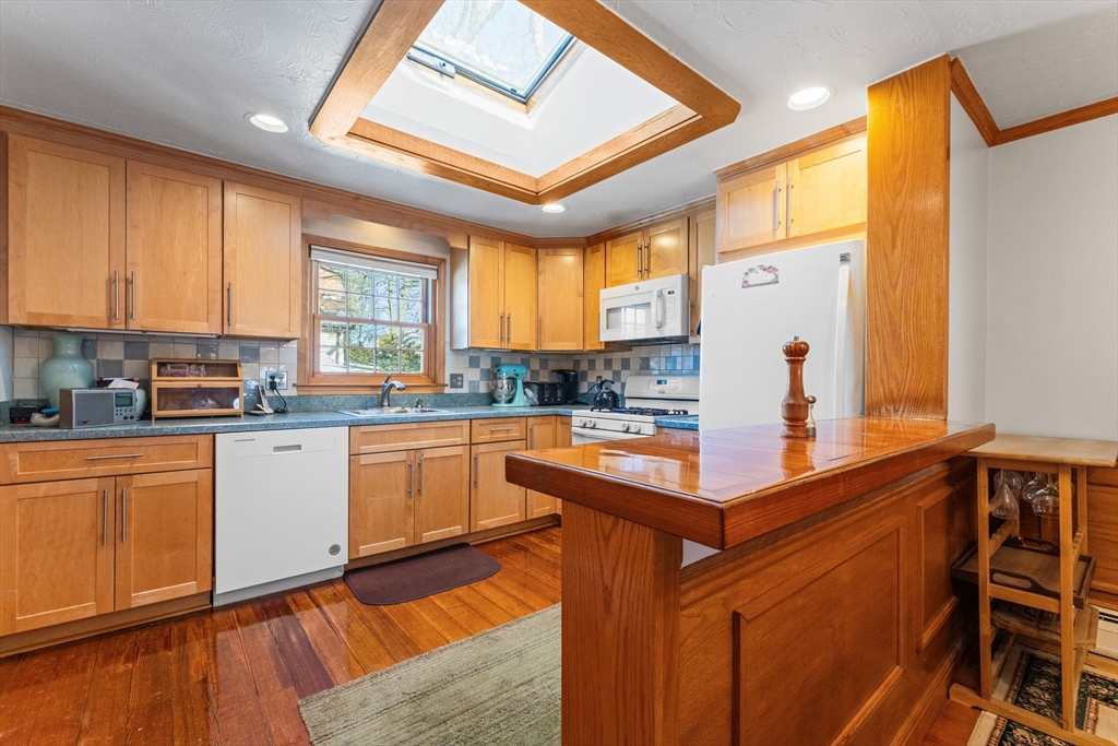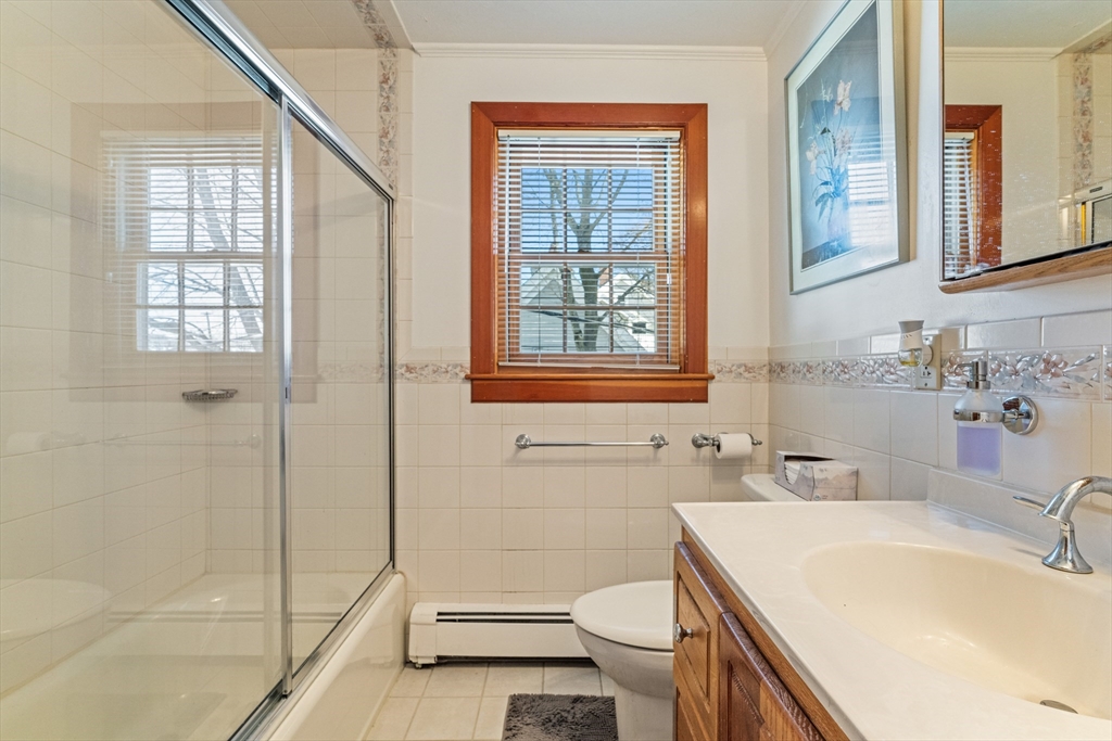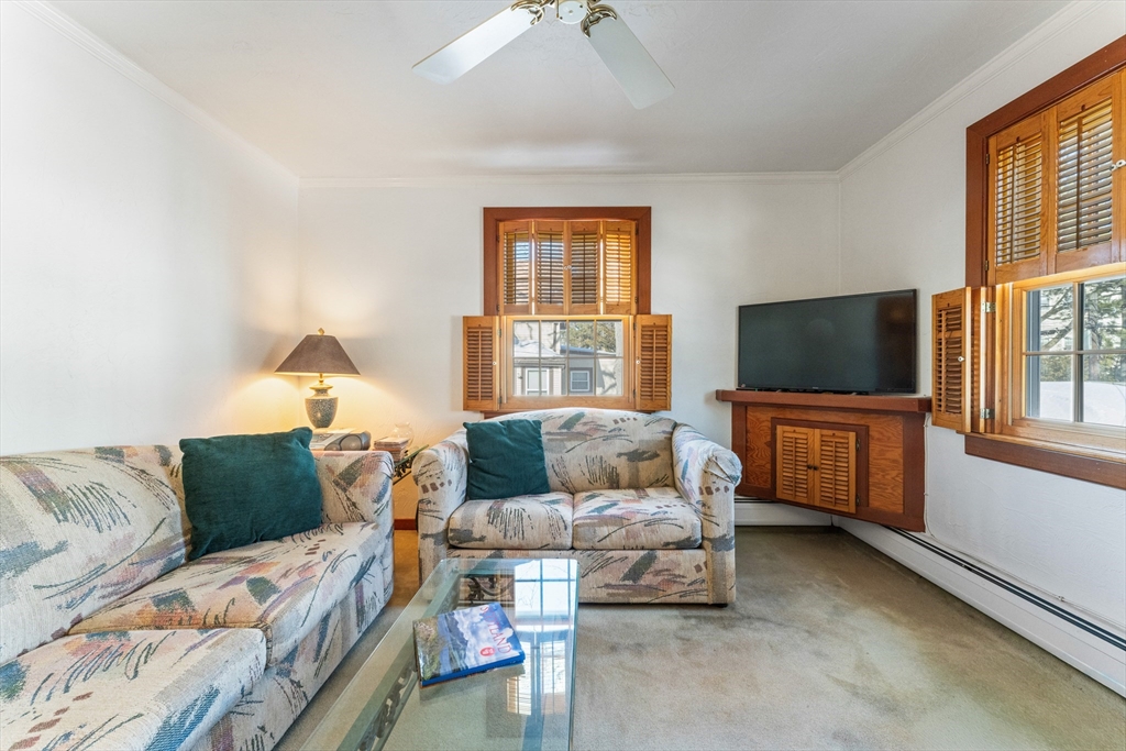 Beautiful top floor 2 bedroom unit in a top notch commuter location on the bus line and within 1 mile of Forest Hills. This unit is loaded with natural woodwork throughout and is sunfilled with 2 skylights in the living room and kitchen. There is a walk up 2nd floor with unfinished area that can easily be converted to added living space it is currently being used for storage with a cedar closet on this level. Nice basement room currently used as a workshop area could be used as you like. This property also comes with its own 2 car garage. Dont miss this one!! open house Sat and Sun 12-2