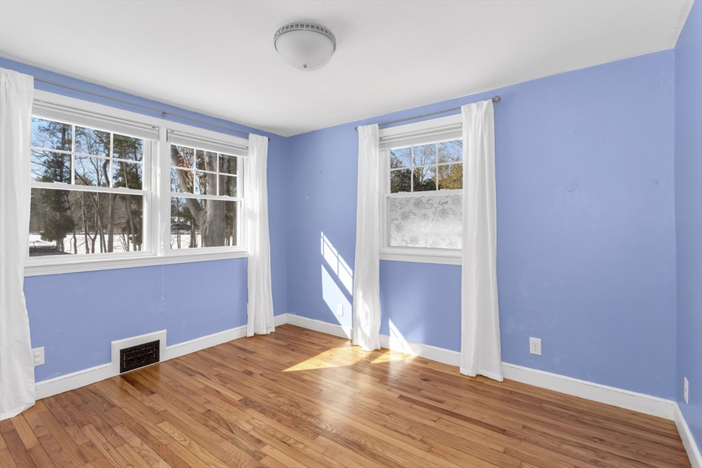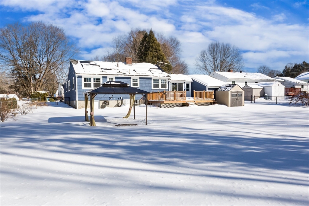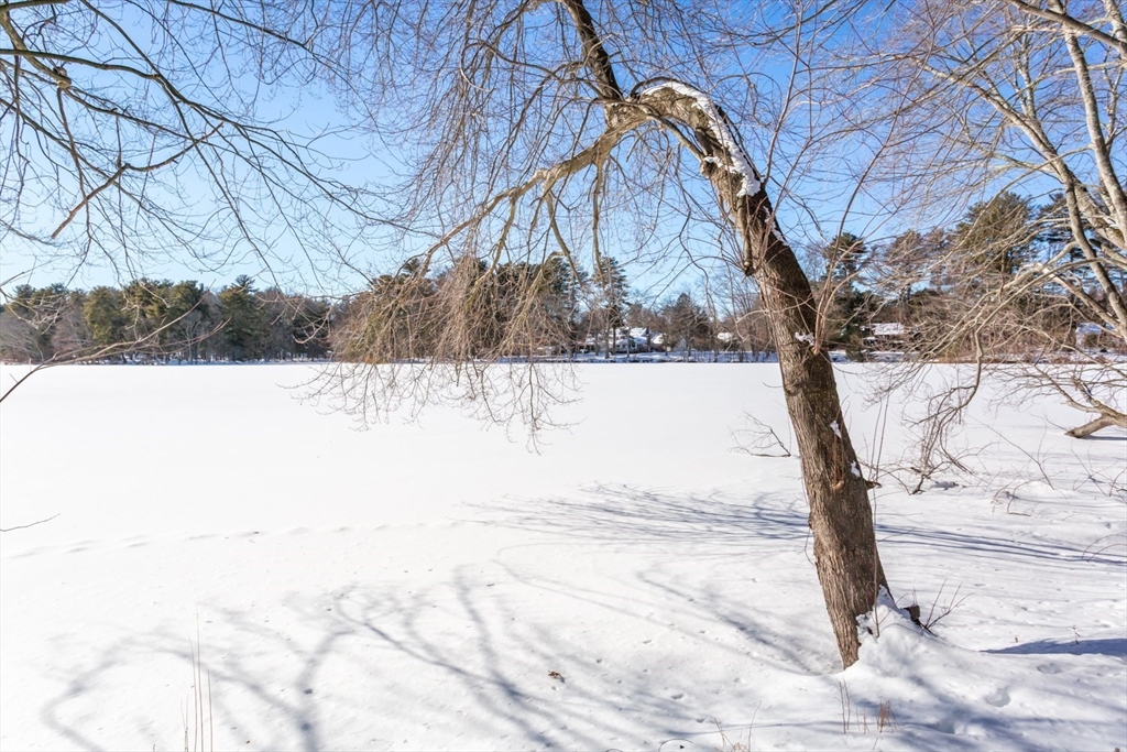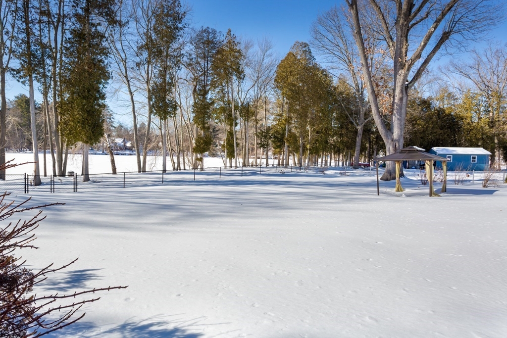 Summer is JUST around the corner....So, picture yourself sitting out on your back deck overlooking your beautiful fenced yard w/ direct water views/EZ access to the picturesque Stearns Reservoir. This sun splashed 3 bdrm ranch is situated on a .34 acre lot in a highly desirable Framingham neighborhood conveniently located near route 9, Mass Pike, shopping, restaurants & more. Updated kitchen w/ quartz counters, subway tile backsplash, farmers sink, higher end SS appliances, updated lighting/ plumbing fixtures, breakfast bar w/ water views & dining area. Corner LR loaded w/ windows & gas fireplace. Primary bedroom w/ double closets & 2 addl bdrms as well as updated full bath. Sunroom w/ custom decorative tile, vaulted knotty pine ceiling, wood beams & pendant lights. Huge lower level perfect for storage or finish it for addl living space. Added bonuses: BRAND NEW heating system, solar panels, central air, hardwoods, storage shed, gazebo area, firepit, & ALL appliances included.