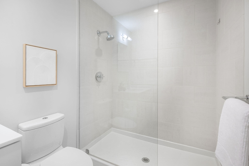 Sleek, sophisticated living in the heart of Fort Point. This expansive 717 sq. ft. studio at FP3 offers refined urban style in one of Boston’s most coveted boutique elevator buildings. Loft-like ceilings, oversized windows, and hardwood flooring create an airy, open feel filled with natural light. Thoughtful upgrades elevate this home, including Hunter Douglas designer plantation shutters, energy-efficient recessed lighting throughout, and premium Elfa closet systems with integrated sensor lighting. The kitchen features contemporary cabinetry, stone countertops, and stainless-steel appliances, while the modern bathroom showcases a sleek standing shower. In-unit laundry and a new (2025) Trane HVAC system ensure comfort and convenience year-round. FP3 residents enjoy a 24/7 concierge, bike storage, and a rotating art gallery in the lobby. The roof deck offers panoramic city views, grill, and lounge seating, providing a serene retreat in the vibrant Seaport/Fort Point neighborhood.