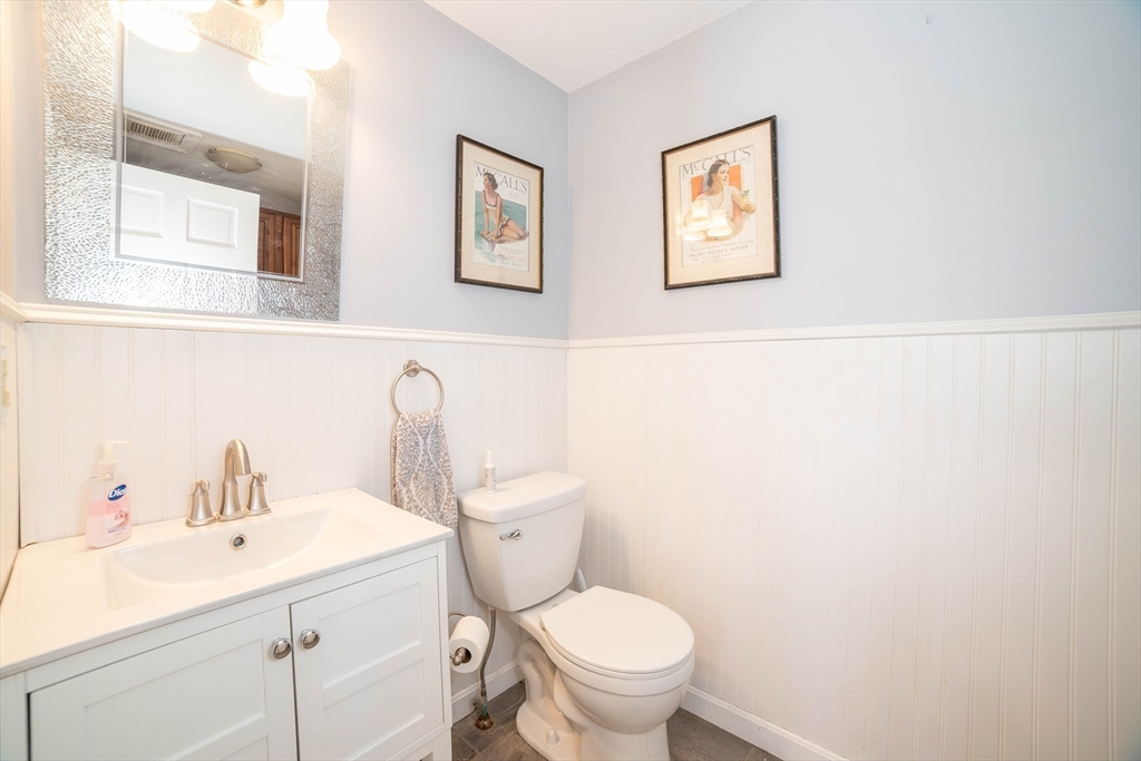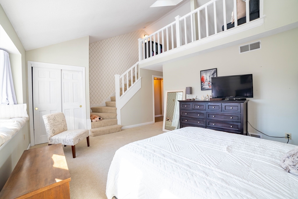Welcome to this inviting, warm, sunny, and well-maintained 2 Bedroom, 1 1/2 Bath condo in the heart of Scotty Hollow Condominiums. The main level features gleaming cherry laminate floors, a spacious living room with a cozy fireplace perfect for long New England winter days, and a dining area that opens to a private deck. The bright and functional kitchen offers updated appliances, and a convenient half bath with in-unit laundry to complete this level. Upstairs are two generous bedrooms, both with ample closet space and direct access to a tastefully decorated Jack-and-Jill full bath. The main bedroom also offers a loft area ideal for a quiet retreat. The fully finished, versatile basement provides direct access to the 2 assigned parking spaces. Residents enjoy an inviting in-ground swimming pool (seasonal), clubhouse, tennis courts and nearby nature walking trails. An ideal setting for comfortable living with an easy commute and quick access to Route 3.