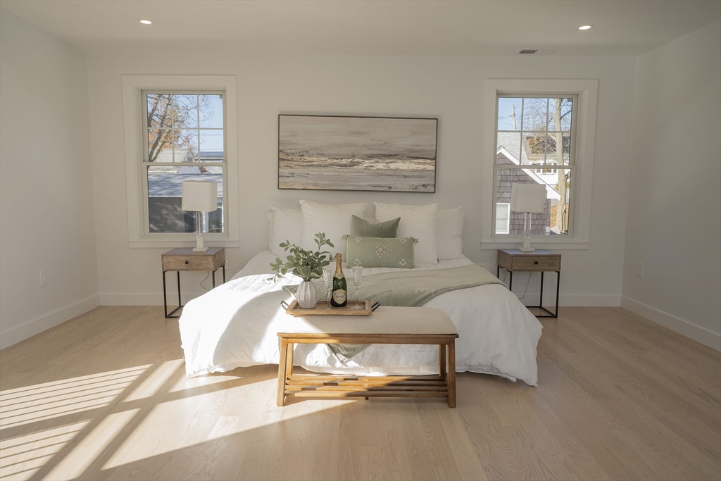 Indulge in modern luxury with this stunning home. This 4 bedroom, 3 -bathroom home seamlessly blends chic style with an abundance of functional space. The architectural design is spotless, showcasing 8 foot ceilings, a stunning fireplace, state of the art kitchen & sun filled living room which opens to a fabulous deck and patio, creating a perfect indoor-outdoor space. The gourmet kitchen features a sleek design w/ a large island, high end appliances, & stylish open shelving. Upstairs, the lavish primary suite features full bath & large custom closets and 3 additional massive bedrooms. This property also features a 2 massive attached car garages, sitting area, laundry room. This home is located near conservation trails, 5 minutes to main highways, 25 minutes to Boston offering a lifestyle of convenience, luxury & tranquility! This house is energy Efficient, Anderson windows, closed cell foam insulation, heat pump system for heat & AC, ERV unit in attic, EV charger connection etc...
