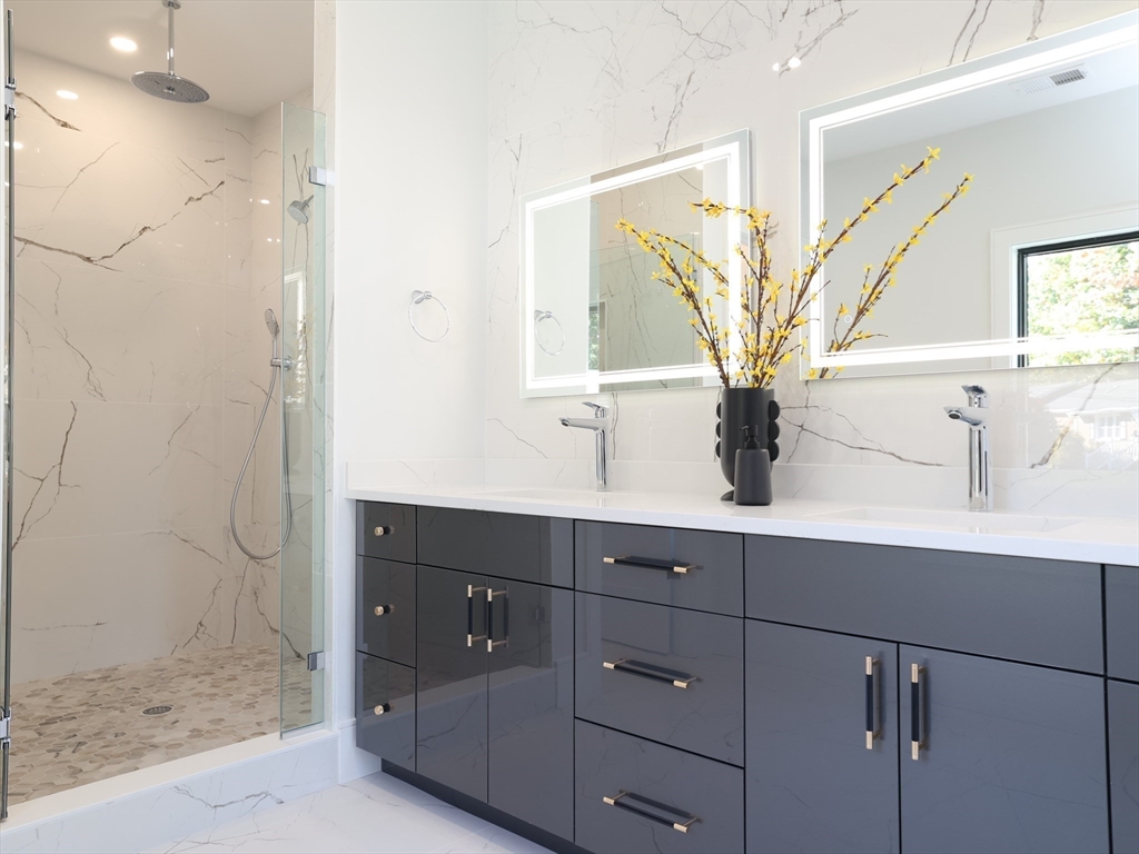Set at the end of a quiet cul-de-sac, Josselyn Place returns. Newly constructed by acclaimed Edge Builders, this residence will be meticulously refinished, and reintroduced with a new construction limited warranty—because when it’s done right, it deserves a second act. Offering 4,110 sq ft of modern luxury, the home features 10-ft ceilings, expansive living, dining, and kitchen spaces with custom walnut and white cabinetry, gas-powered Thermador appliances, and refined finishes throughout. A first-floor en-suite bedroom or office adds flexibility. The second level showcases 9-ft ceilings, three bedrooms, and a serene primary suite with a private balcony overlooking the treetops. The finished lower level includes 9-ft ceilings, an oversized gym or entertainment room, additional bedroom, full bath, laundry, storage, and bulkhead access. Enjoy a private roof deck, deeded fenced yard with irrigation, 1-car garage, 5-zone HVAC