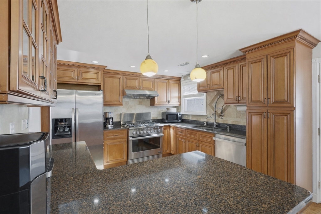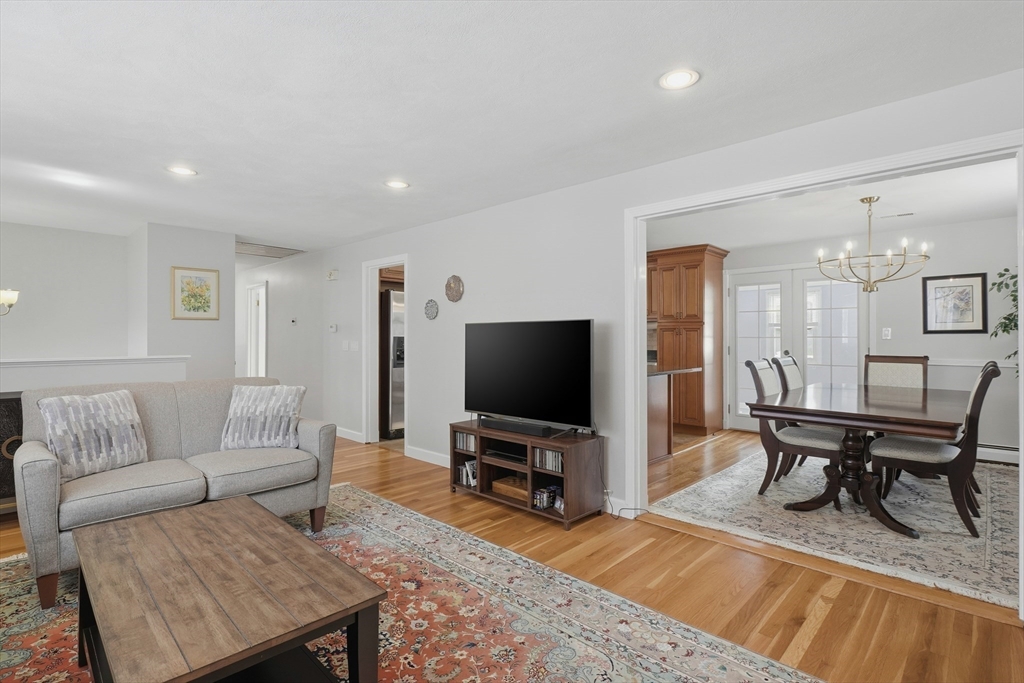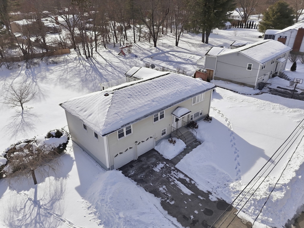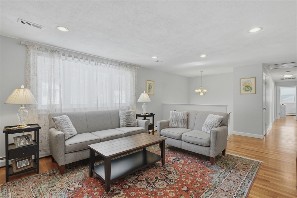 Welcome to this lovely, bright & updated 4 bedroom, 2.5 bath Split Level home w/2 car garage in wonderful neighborhood location! Large fireplaced living rm w/Hardwood fl, recessed lights & Bow window opens to formal dining rm w/hardwood fl, chair railing & French drs to sunroom! Gorgeous updated kitchen w/granite, stainless steel appliances, gas cooking & recessed lights! Lg primary suite w/hardwood fl, updated tiled full bath & walk-in closet! 3 additional bedrooms all w/hardwood flrs & double closets! Updated hallway bath! Lower level has fireplaced family room w/crown molding, tile fl & picture window, home office w/recessed lights, laundry w/half bath, loads of storage & mudroom to 2 car garage! Gas heat & Central air! Huge maintenance free deck overlooking gorgeous, level backyard w/2 sheds! Washing machine in 2025, Architectural roof in 2012, whole house water filtration sys & more! Wonderful side street location, close to Callahan State Park & all major rts, schools & shopping!