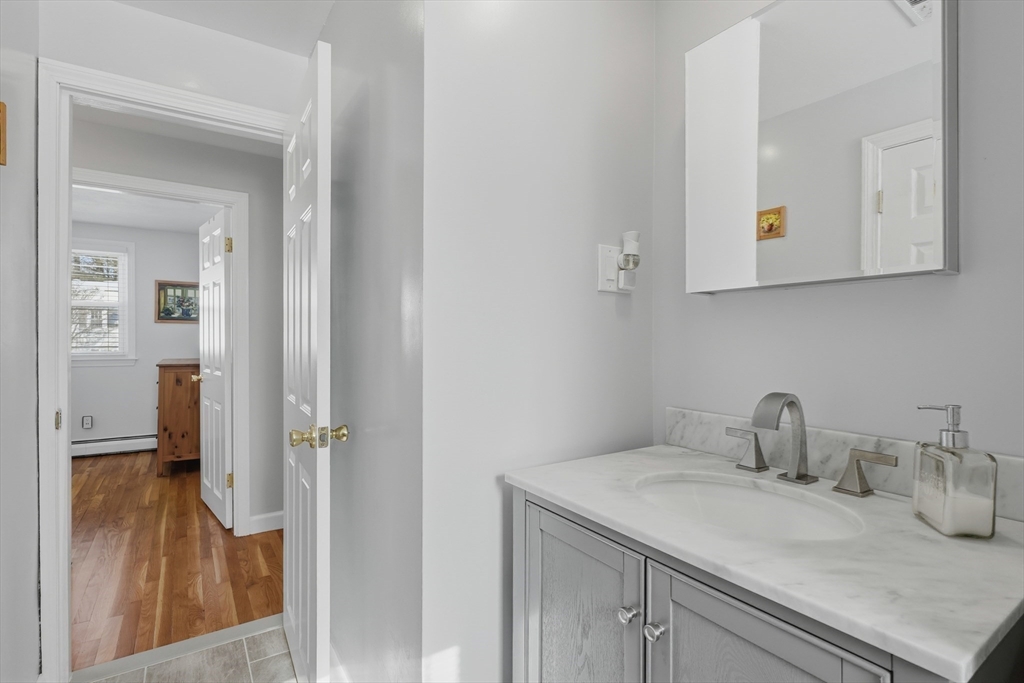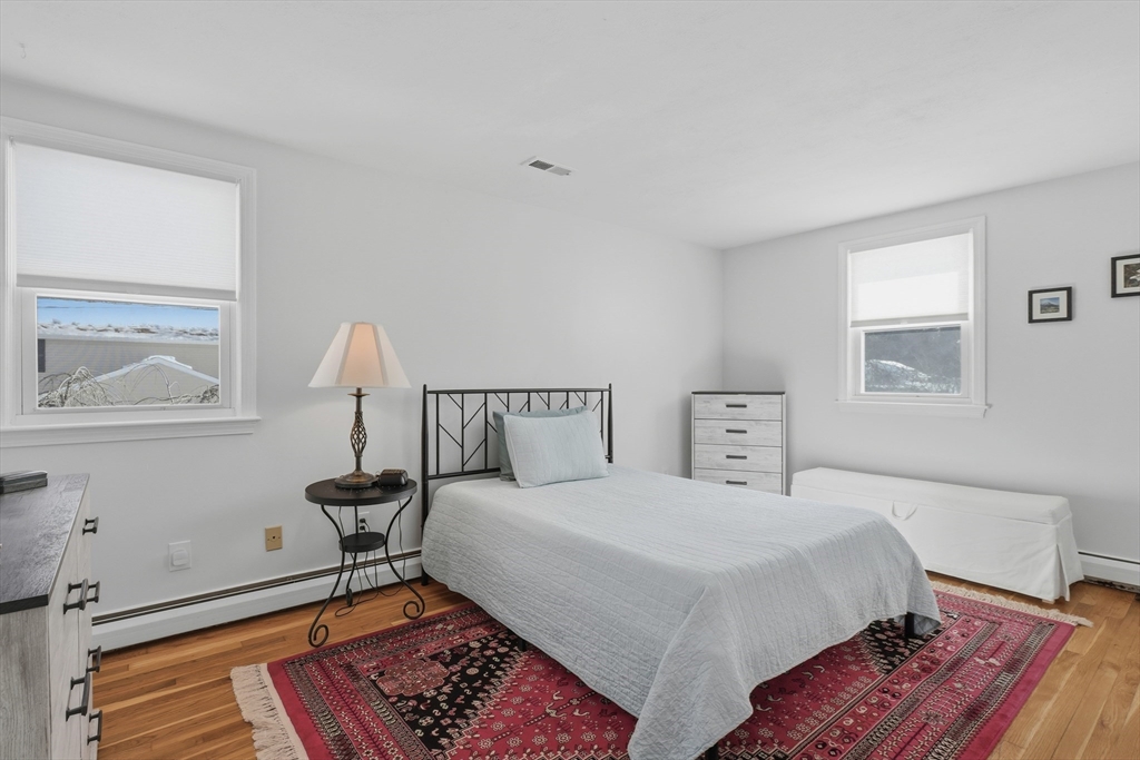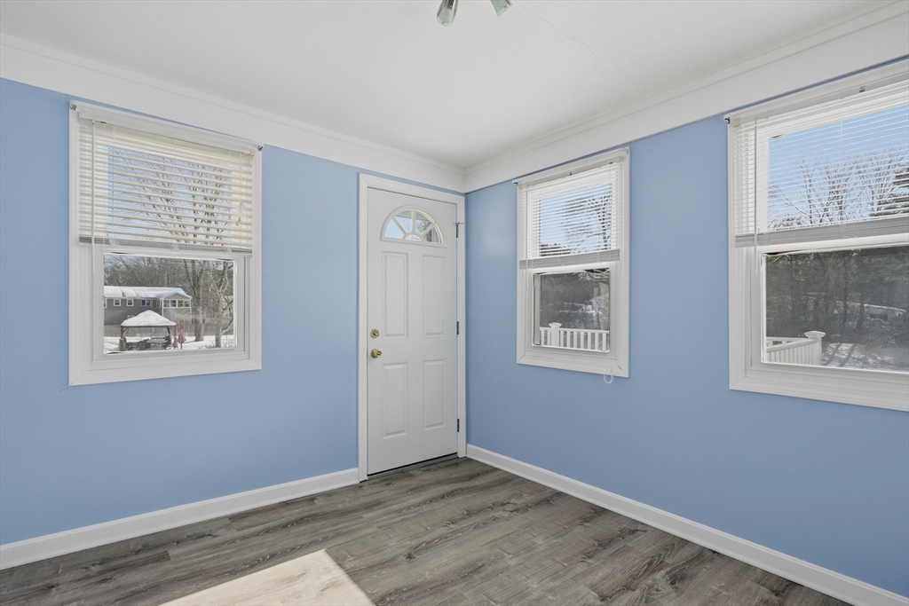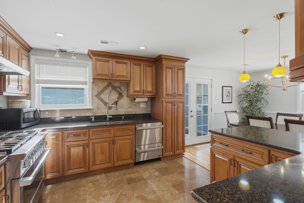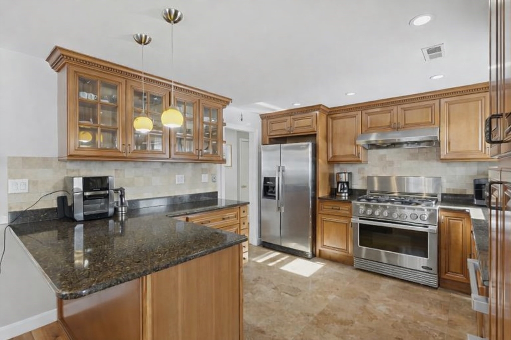 Welcome to this lovely, bright & updated 4 bedroom, 2.5 bath Split Level home w/2 car garage in wonderful neighborhood location! Large fireplaced living rm w/Hardwood fl, recessed lights & Bow window opens to formal dining rm w/hardwood fl, chair railing & French drs to sunroom! Gorgeous updated kitchen w/granite, stainless steel appliances, gas cooking & recessed lights! Lg primary suite w/hardwood fl, updated tiled full bath & walk-in closet! 3 additional bedrooms all w/hardwood flrs & double closets! Updated hallway bath! Lower level has fireplaced family room w/crown molding, tile fl & picture window, home office w/recessed lights, laundry w/half bath, loads of storage & mudroom to 2 car garage! Gas heat & Central air! Huge maintenance free deck overlooking gorgeous, level backyard w/2 sheds! Washing machine in 2025, Architectural roof in 2012, whole house water filtration sys & more! Wonderful side street location, close to Callahan State Park & all major rts, schools & shopping!