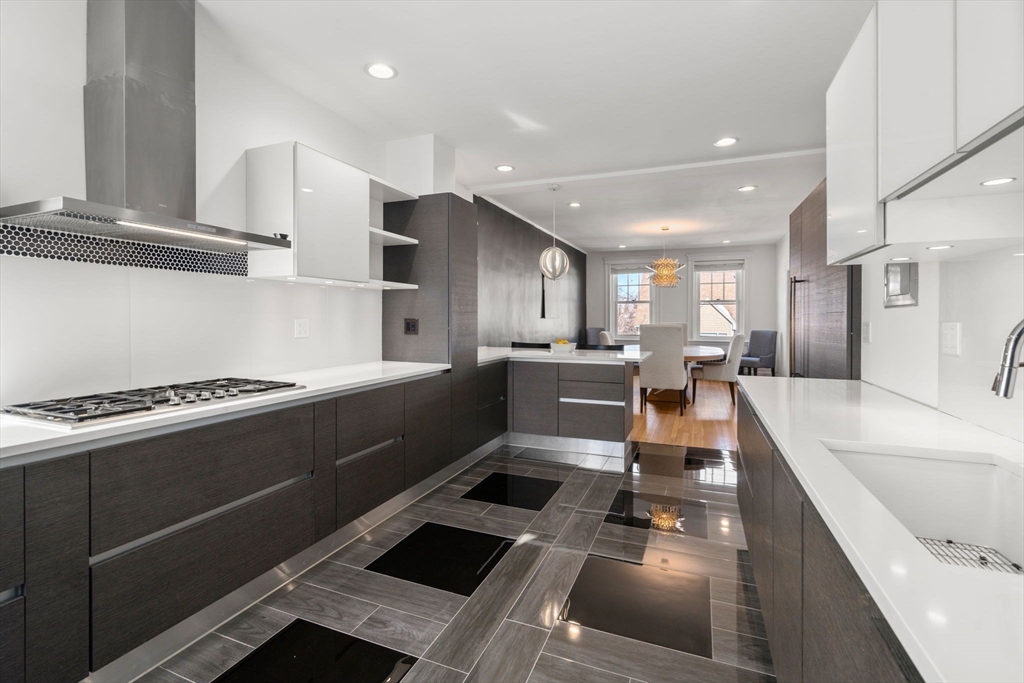 Sophisticated penthouse living in the heart of Coolidge Corner. This fully renovated 3 bed, 2 bath residence seamlessly blends 1920s architectural character w/ modern luxury across 1,722 sq ft of beautifully curated space. Sunlight streams through expansive windows, highlighting gleaming wood floors & an elegant, open flow between the living room, formal dining room, & stunning chef’s kitchen w/ custom European cabinetry, quartz counters, top-tier appliances, & breakfast bar. The spacious primary suite features a private en-suite bath with radiant floor heat. 2 add’l bedrooms offer flexibility for guests, office, or creative space. Central A/C, in-unit laundry, exclusive storage, prof. mgmt., & a pet-friendly association complete the offering. Perfectly positioned near Babcock & Pleasant, just 0.2 miles to Green Line C, renowned restaurants, shops, parks, & schools. Exceptional opportunity in one of Brookline’s most desirable neighborhoods. OH Thu 5-6, Fri 1:30-2:30, Sat & Sun 12-1:30