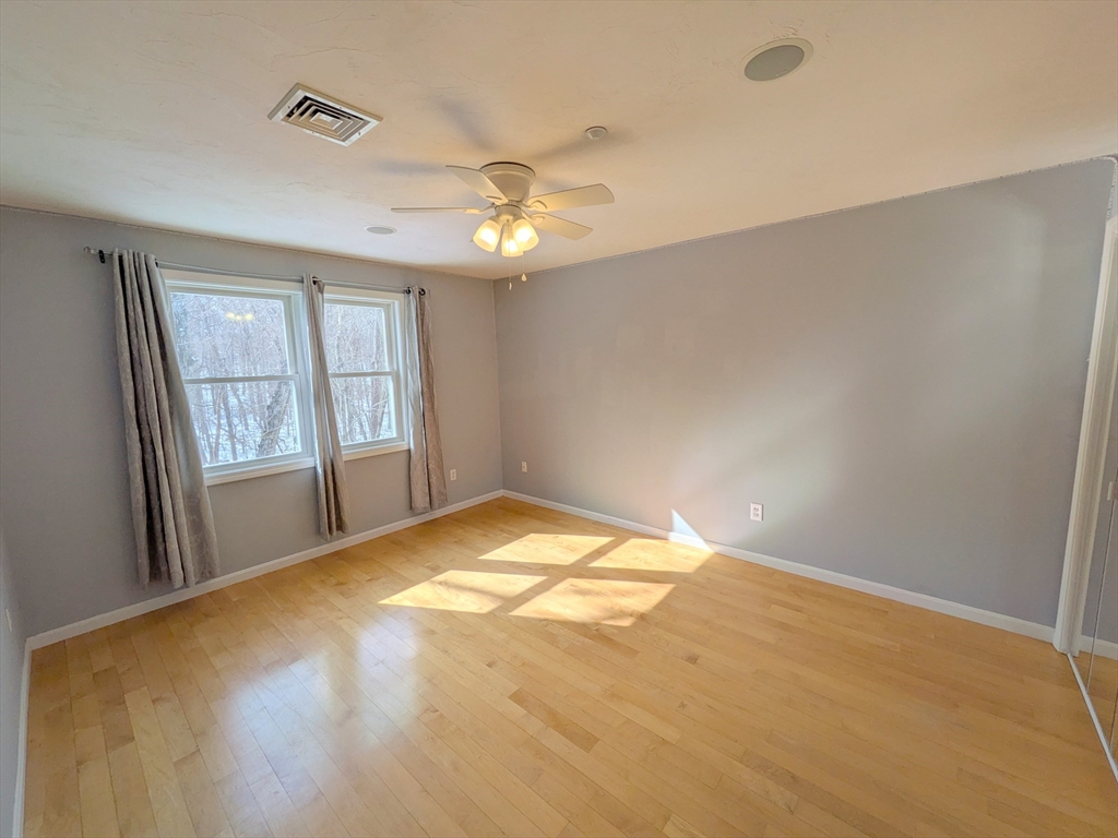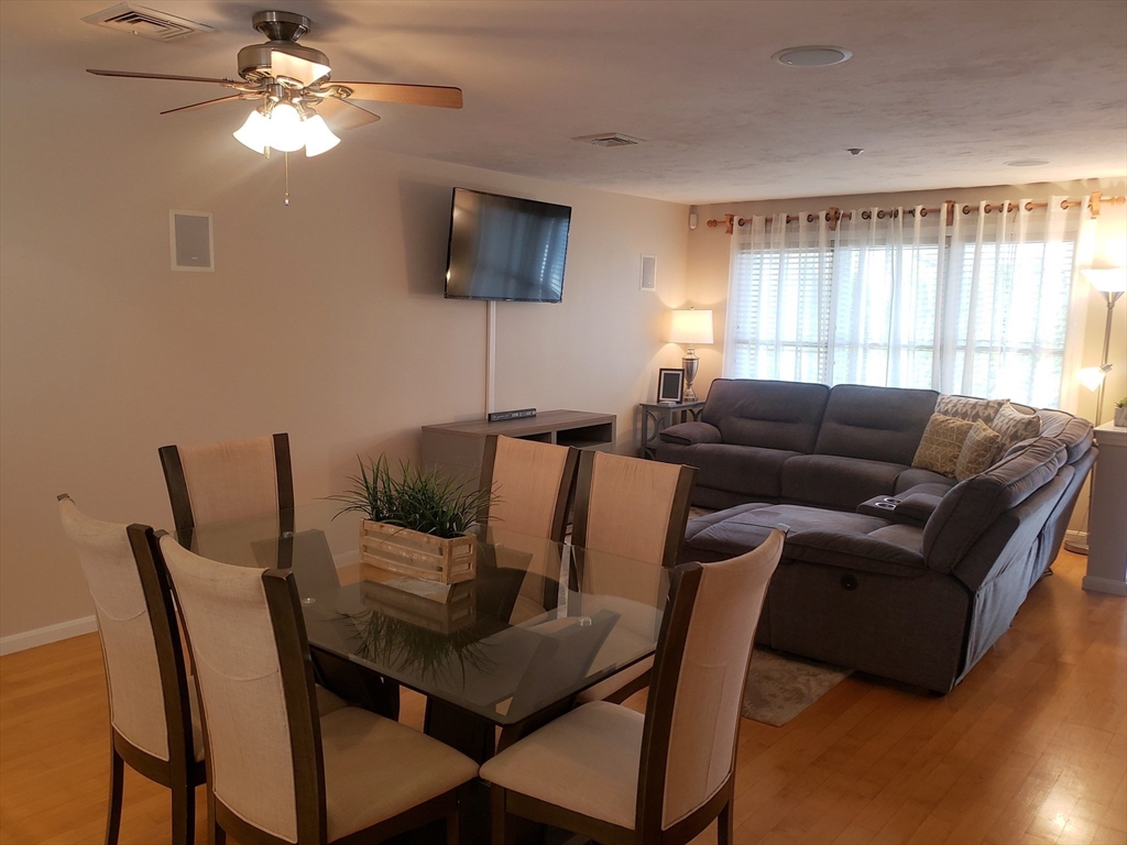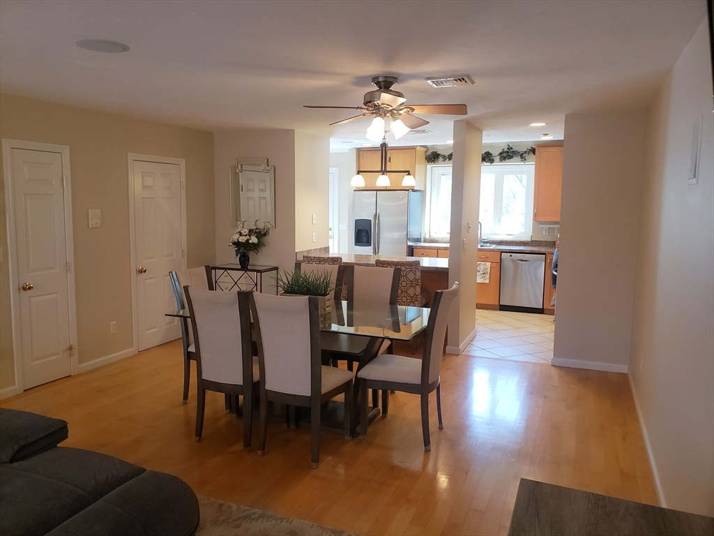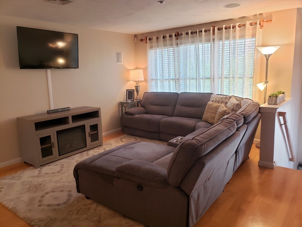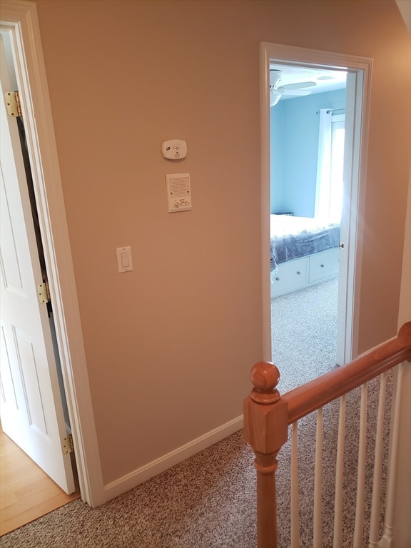 Beautifully kept townhome featuring 3 levels of living space. Open plan first-floor with maple hardwoods, living and dining areas, spacious kitchen with tons of workspace. Custom built maple cabinets, stainless appliances, breakfast bar & large pantry. The second floor offers two very good-sized bedrooms, one with hardwoods, the other with a balcony. The top floor is a large 3rd bedroom that could also be used as a family room, den or home office. The lowest level has laundry, a tandem 2 car garage and storage space. All appliances stay. Composite deck off kitchen, with stairs that lead to a grassy area and a wooded conservation space. Great amenities with central air, central vac, ample closet space and built in sound system speakers. Commuters dream with easy access to 95, 295, and 495. Also close to the train, downtown restaurants and lots of shopping options up and down route 1. Showings deferred until Sat 2/14, 11 am open house. Also open Sun, 2/15, 1-2 pm.