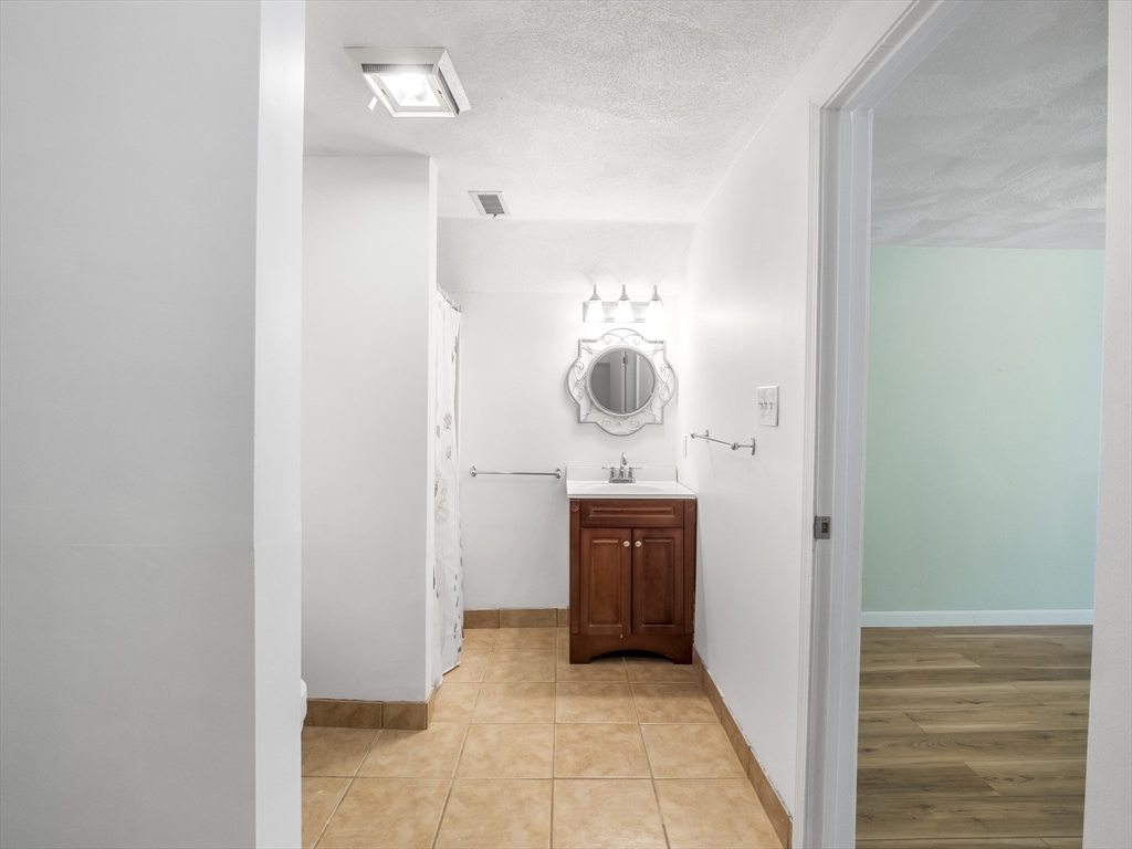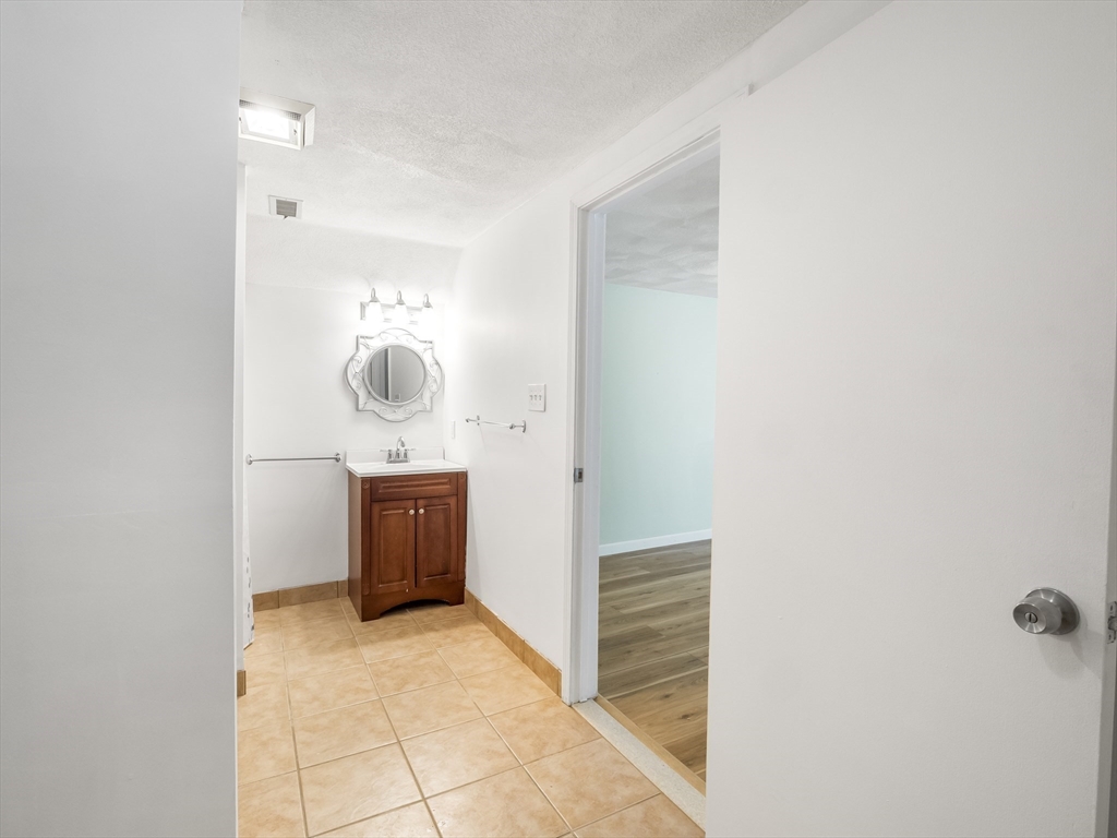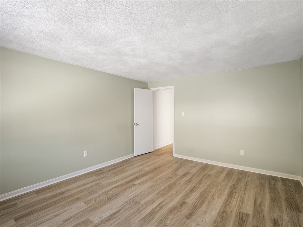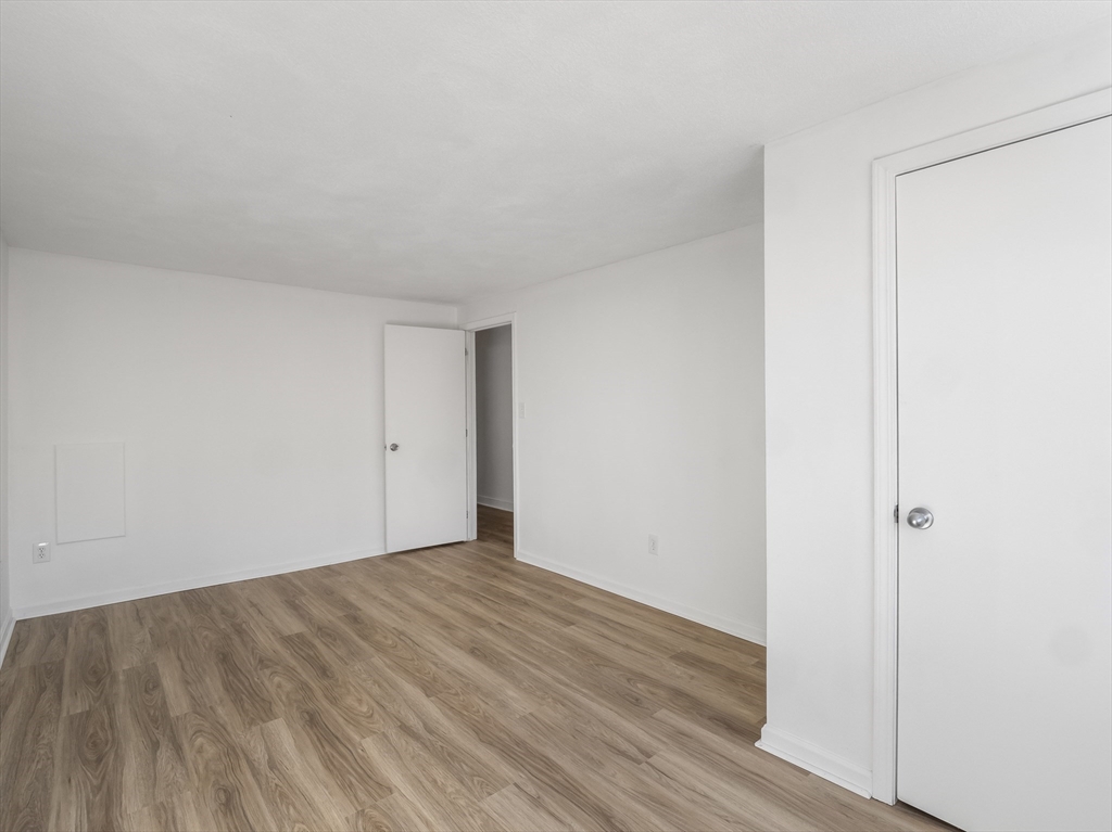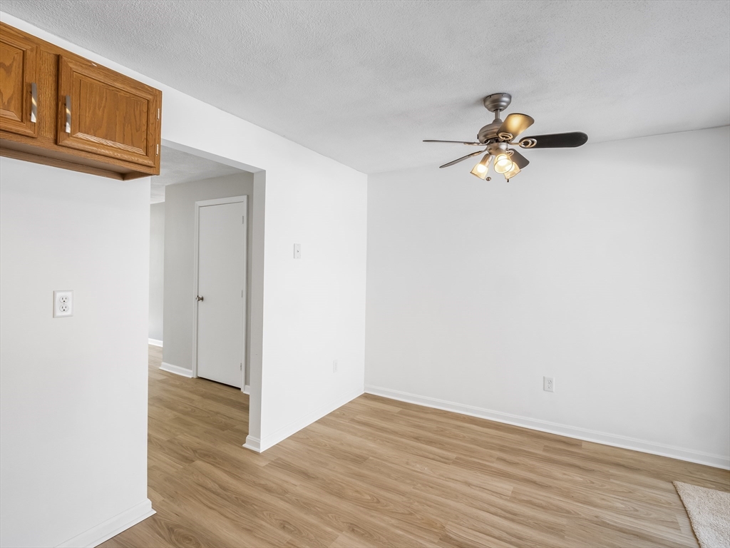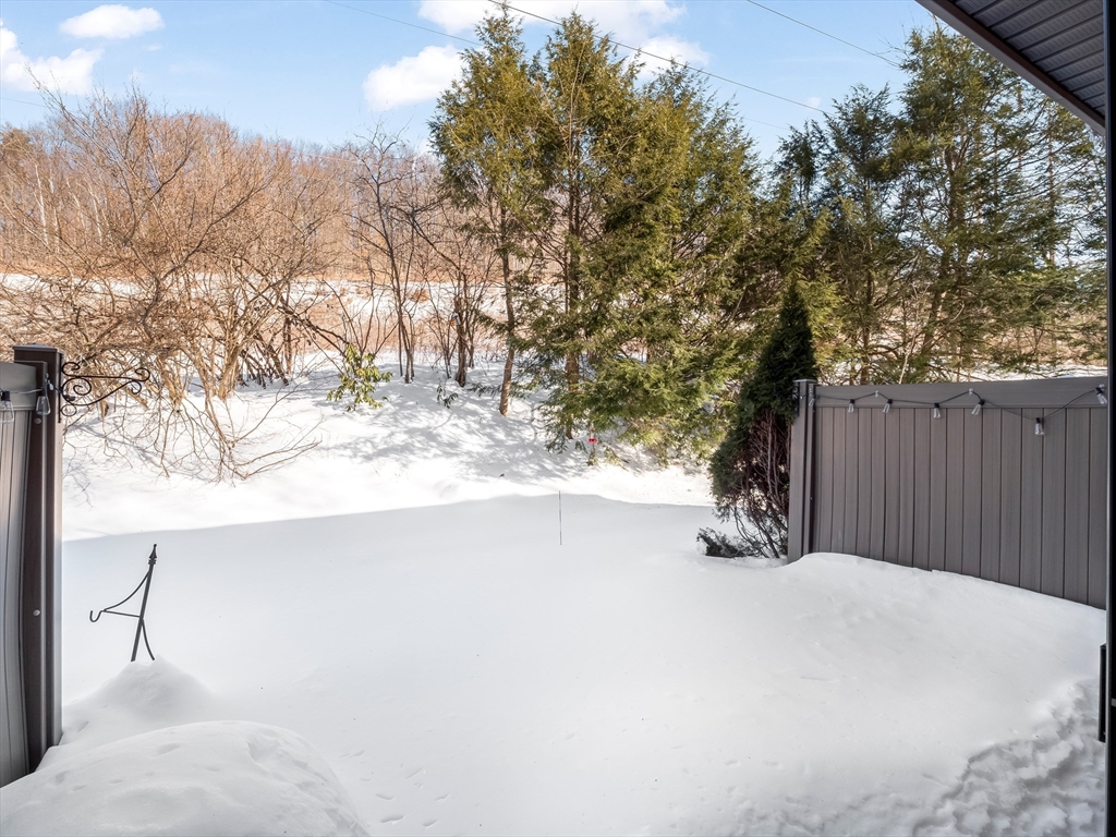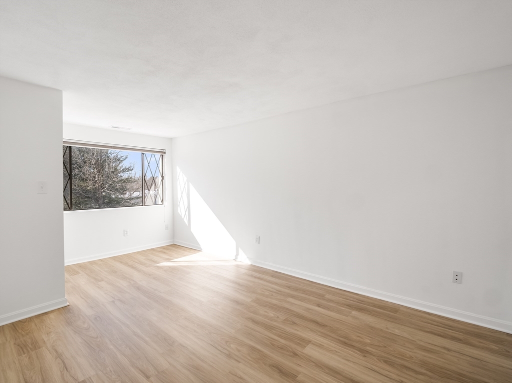 Renovated townhouse ~ freshly painted, new flooring throughout, recently appointed upgrades in kitchen including a new gas stove. This townhome is three floors ~ a few steps to the basement where there is an open living room with a gas fireplace and bathroom and laundry - it's big. Then upstairs on the main floor is another large living/dining & kitchen - all consistent flooring too. The kitchen has been upgraded with a new quartz white countertop, the oak cabinets have been refurbished because they are in good condition and a new gas stove has been installed. There is room for an eat-in dining table or you can put an island in the kitchen depending on what you like. The third floor has two huge bedrooms. In one bedroom there is an enormous closet (walk-in) and in the other comes with two closets. This unit is tucked way back away from the road and looks out to green space. Comes with central air, patio right off the kitchen, and 2 parking spots! Easy to show by appointment.