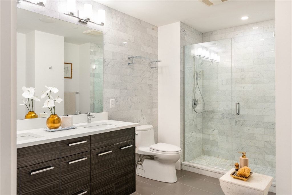 Experience refined urban living at 14 West Broadway, ideally located directly across from the Broadway T Station in South Boston. This premier full-service residence delivers effortless luxury with 24-hour concierge, valet garage parking, a state-of-the-art fitness center, residents’ lounge, bike storage, and a spectacular common roof deck with panoramic city views. A front-facing two-bedroom, two-bath home designed for comfort and style. An oversized private balcony captures sweeping skyline views toward Back Bay, creating the perfect backdrop for morning coffee or evening entertaining. The chef’s kitchen is outfitted with Wolf and Sub-Zero appliances, designer cabinetry, striking quartzite countertops, and integrated Sonos audio that carries throughout the residence. Both bedrooms easily accommodate king-size furnishings and offer custom walk-in closets. Spa-like baths are finished in timeless marble, with the primary featuring a glass-enclosed walk-in shower.