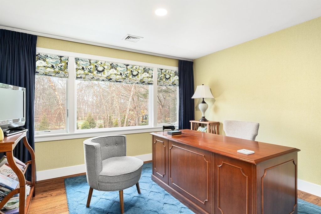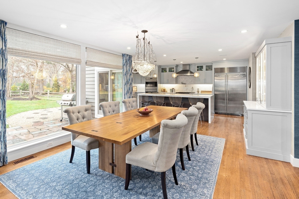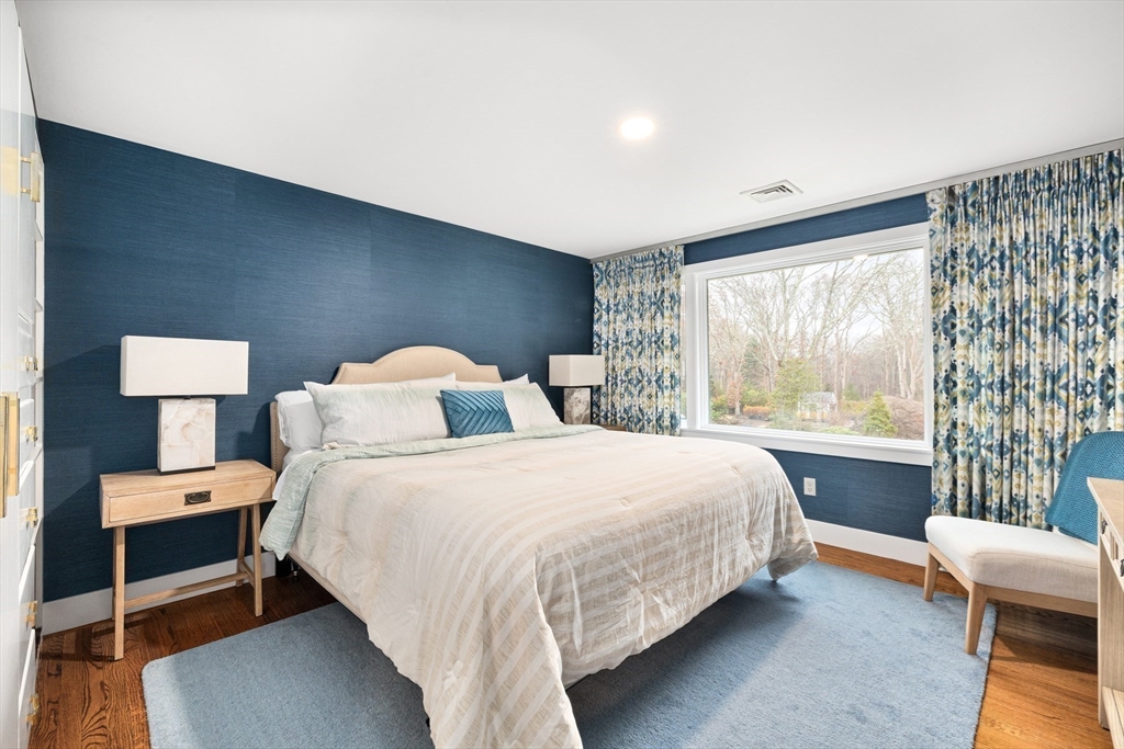 Set along one of Padanaram's most sought after streets, this New England Contemporary sits on a rare ONE acre Village lot and offers over 3,000 sq ft of refined coastal living. The open first floor features a light-filled living room with a linear gas fireplace, spacious dining area, and a sophisticated kitchen with Wolf and Bosch appliances, quartz surfaces, and waterfall island. Both the living room and kitchen open to a flagstone patio and expansive backyard. The first-floor primary suite provides a private retreat, while a separate office and utility wing with laundry, half bath, radiant floors, and custom storage enhance functionality. Upstairs are four additional bedrooms with built-ins and picture windows, two full baths, and a cedar closet. With newer windows, HVAC system, garage doors, roof, and an extensive interior renovation, this home is turnkey and designed for those who value quality, comfort and location in equal measure.