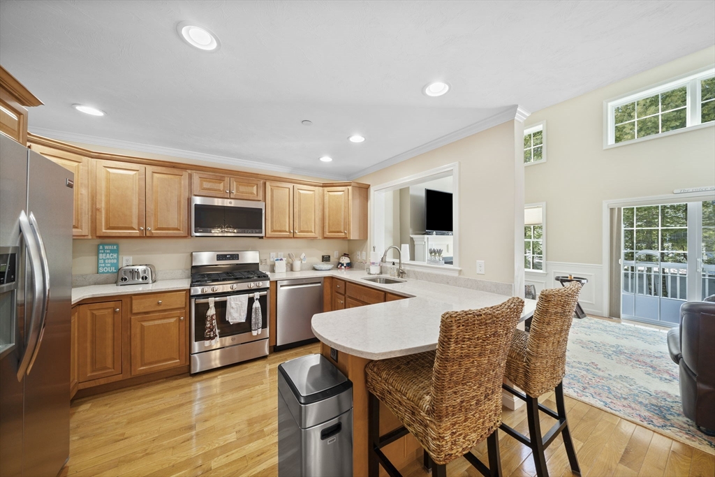Welcome to The Seasons – an Impeccably Maintained 55+ Community! Nestled on a peaceful cul-de-sac, this home offers comfort, style, and an abundance of natural light. Step inside to find soaring ceilings and an open-concept layout designed for easy living. The kitchen features rich cabinetry, quartz countertops, and stainless-steel appliances, seamlessly flowing into a bright, spacious living room with a gas fireplace, sliding doors to the deck, and a welcoming dining area. The first-floor primary suite provides convenience and comfort with a walk-in closet and full bath. Upstairs, you’ll find a versatile second level that includes a generous bedroom, a bonus room perfect for a home office or fitness space, and another full bath. Enjoy the outdoors from your private back deck or take advantage of the community’s amenities, including a clubhouse and beautifully landscaped tree-lined streets. All this, just moments from Marshfield’s shopping, beaches, and highway access.