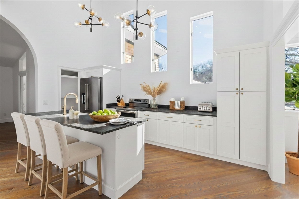 Having just undergone a comprehensive and meticulous renovation, this exceptional residence offers an elevated lifestyle highlighting high-end finishes throughout. All major systems are brand new including plumbing, electrical, HVAC and roof. Abundant natural light fills the home, accentuating rich hardwood floors and a thoughtfully designed open layout. The grand kitchen is a true showpiece, featuring vaulted ceilings with skylights, an oversized island, and seamless flow for easy entertaining.The expansive living room features a vaulted ceiling and is anchored by a wood-burning fireplace, creating a warm yet sophisticated atmosphere. Find a serene escape in the spacious primary bedroom with en-suite bathroom. Additional highlights include two deeded parking spaces, ample guest parking, a dedicated laundry room, a second floor office and multiple private decks ideal for hosting guests or quiet relaxation. This project was thoughtfully designed and delivers true turnkey peace of mind!
