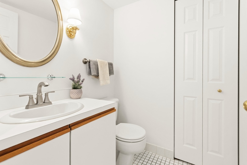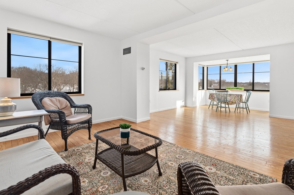 Prepare to be impressed by this spacious, light filled 2 story end unit penthouse! Featuring expansive views, updated kitchen, in-unit laundry, garage parking #41, additional outside parking #126 and a 25' by 12' exclusive use ROOF DECK!! The Montvale Condominiums, built in 1986 is a desirable and well managed community of 118 units. It is located 1/2 mile from Rte 93 and offers a quick commute to Boston. The open floor plan of this great condo allows for flexible use. The kitchen with warm wood cabinets and stone counters is the perfect place to prepare a meal. The dining area, surrounded by windows allows for sweeping views as you dine. The two generous bedrooms have skylights and access to the roof deck. Recent updates include many new windows and new carpet on the stairs and second floor. All this plus a secure storage unit. Refreshed and spotless, this fine home is already for it's new owner. Come and see. You won't be disappointed. Offers due Tuesday, February 24 at 2:00 PM.