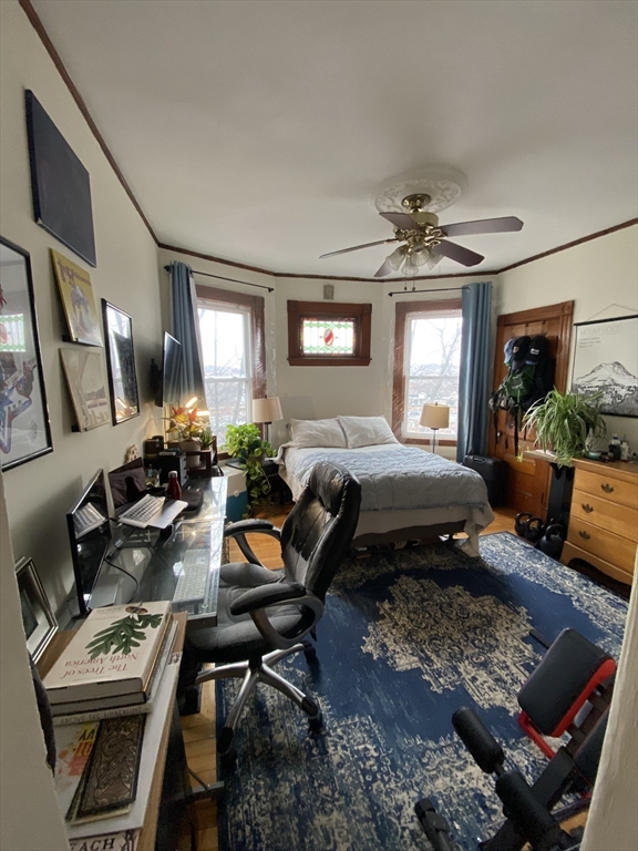 Available 9/1/2026! Large apartment with a gorgeous renovated eat-in kitchen with granite countertops, dishwasher/disposal and built-in microwave. All bedrooms are large. Nice high ceilings and beautiful woodwork. Hardwood floors throughout. Central heat & air conditioning. Laundry in unit. A private deck! Nice views of Brookline. Bike storage.