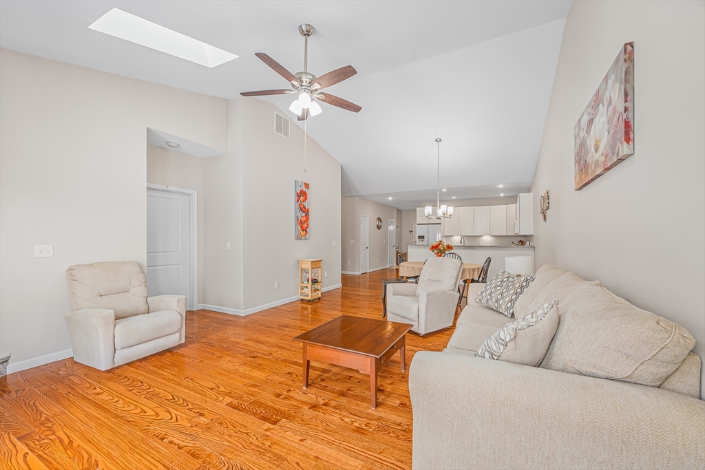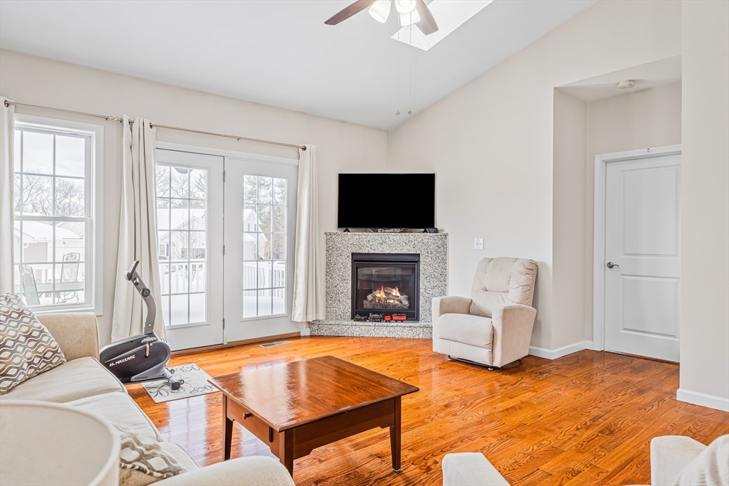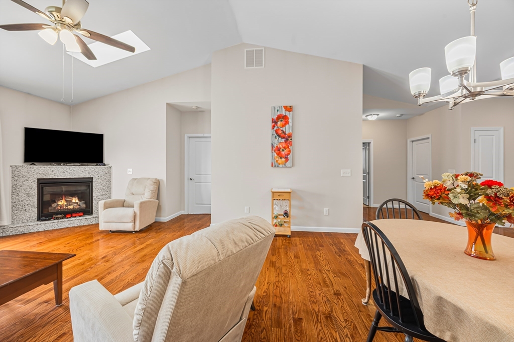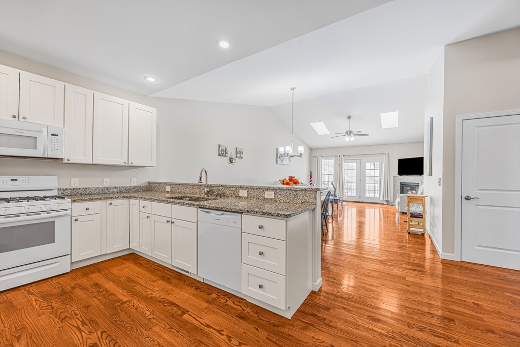 Welcome to Summer Hill Estates Of Belchertown, the area's sought after 55+ condo community ! The home features fully appliance kitchen with granite countertops open to dining area and living room. Living room offers cozy fireplace, perfect for the cooler months. Master bedroom has walk-in and separate closet space with a private bath with soaking tub/shower and double bowl sink. Spacious 2nd bedroom convenient to hall bath and laundry. The French door in the living room leads to outdoor deck with professionally installed awning covering deck area. Community pavilion is a fun place for parties and get togethers. One car garage with garage door opener and low maintenance living in one of Belchertown's most desirable communities!