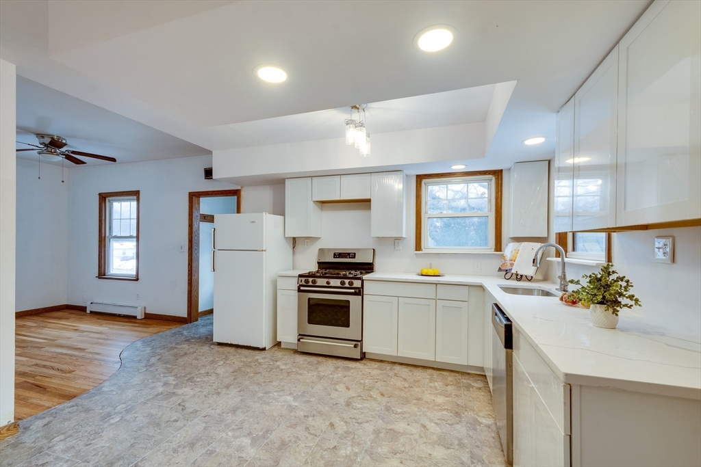 Be amazed with the space in this Fulton Heights' colonial in a convenient location that has been loved by the same family for 35 years! Walk into the XL eat-in-kitchen w/new cabinets, countertops, fixtures, lights & floor. Enjoy deep pantry/closet. Wander into cozy fireplaced combined living rm & dining rm w/refinished hardwood floors. Full tiled bath off kitchen. Heated mudroom/office complete level. 2nd floor has 4 generous bedrooms w/new carpet. Full tiled bath w/new floor & vanity has laundry. Bonus LL family rm perfect for teen hangout. Ample storage in LL w/potential to expand. Walk to Carr Pk (dog park, playground, pickleball courts) & bus to Wellington Station. Quick ride to Rte 93, Wrights Pond & Middlesex Fells walking trails, restaurants, library & local shops. Move in & customize your decor. In the spring you can personalize the exterior of the home & landscape the oversized fenced in yard! 4-car driveway. Rheem HW tank 2022. Boiler older but parts updated/well-maintained.