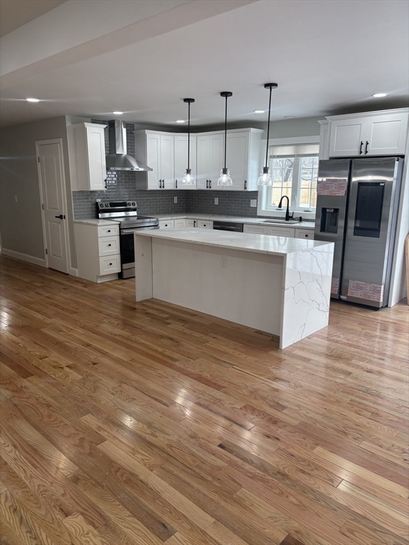 This newly constructed single-family home is the one you've been waiting for! Located on a dead-end street, this home is complete with a spacious open concept living room, 4 bedrooms and 2 and a half baths. The first floor features beautiful hardwood floors throughout with a spacious open concept living room boasting a modern multi-functional fireplace. The living room opens up to an elegant kitchen featuring a walk-in pantry, complete with beautiful Quartz countertops, a waterfall Island and brand-new stainless-steel Appliances. The second floor features wall-to-wall carpeting in each of the four bedrooms and a modern multi-functional fireplace in the master ensuite for your enjoyment. Right off the Dining area is a nice-sized patio for your enjoyment, leading into a spacious back yard for your use and entertainment.
