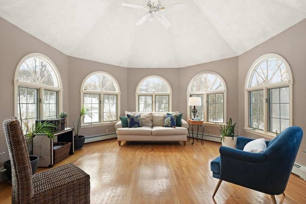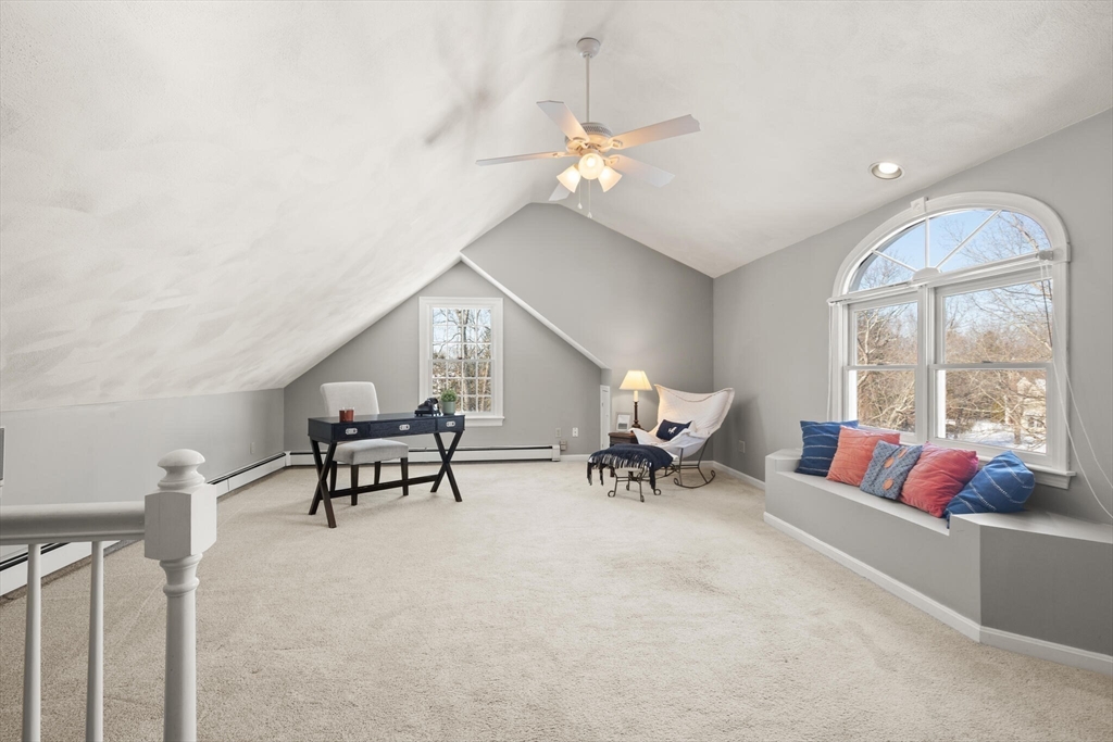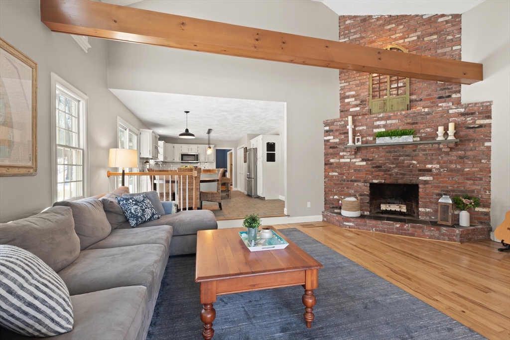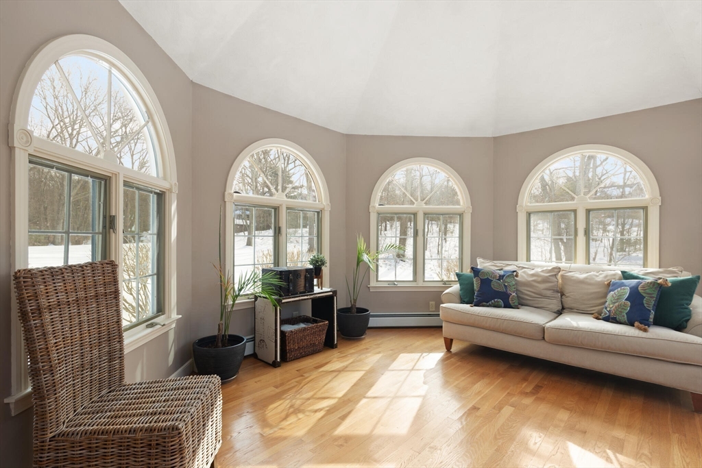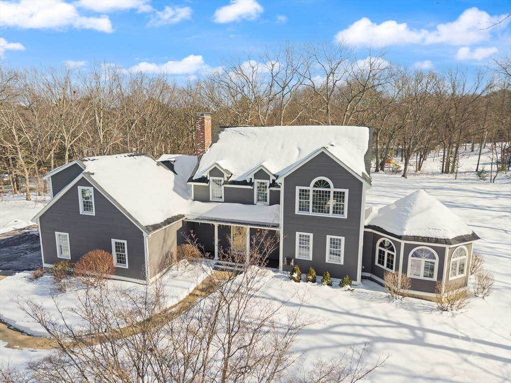 Set on a picture-perfect cul-de-sac in a desirable, established West Wrentham neighborhood, this 4-bedroom, 2.5-bath Colonial is thoughtfully positioned on a private 2+ acre lot. The non-traditional floor plan features a standout family room with vaulted ceilings, a dramatic floor-to-ceiling brick fireplace, and an energy-efficient pellet stove for cozy New England evenings. An inviting and cheerful sunroom, wrapped in windows, offers exceptional natural light and serene views of the surrounding landscape. The primary suite features a private bath and walk-in closet, complemented by two additional bedrooms and a full bath on the second floor. A bonus bedroom over the garage provides ideal space for guests, home office, or hobbies. The finished area in the basement provides even more space for entertainment and recreation! Lovingly maintained and ready for its new homeowner, 10 Follett Drive is sure to check all the boxes on your "Dream Home Checklist".